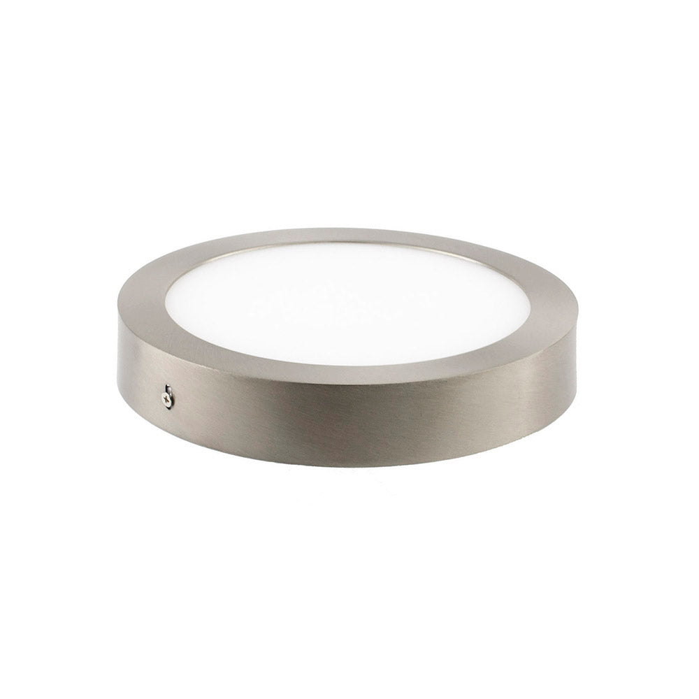 Luminaria led de superficie de gran calidad con cuerpo de aluminio y niquelado en acero inoxidable, chip alto brillo OSRAM SMD2835, selector de color de luz (cálida, neutra o fría), NO Flicker (sin parpadeos), Driver integrado, Sistema mejorado de disipación térmica.