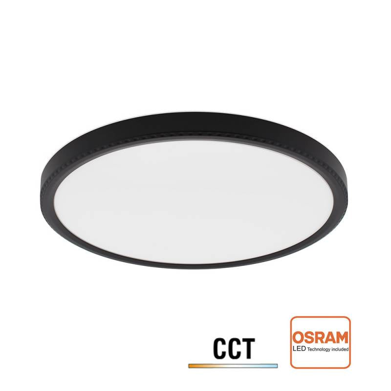 Plafón Led MOON KRAMFOR 22W, Osram ChipLed, Ø300mm, CCT, regulable, negro, 3000-4000-6000K