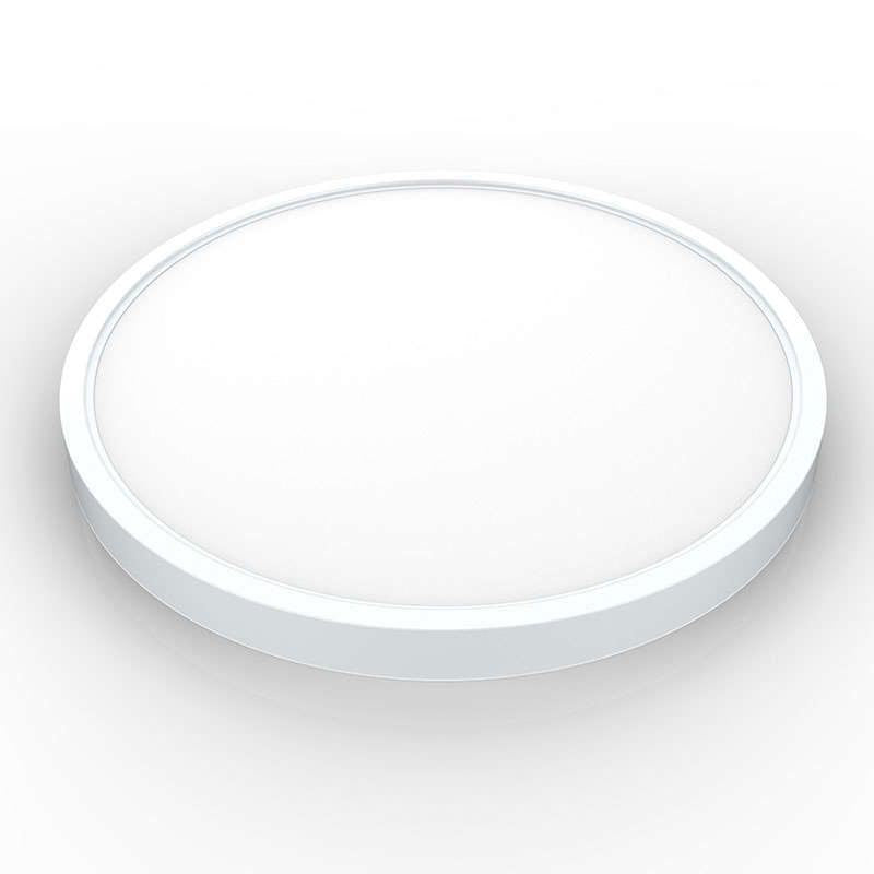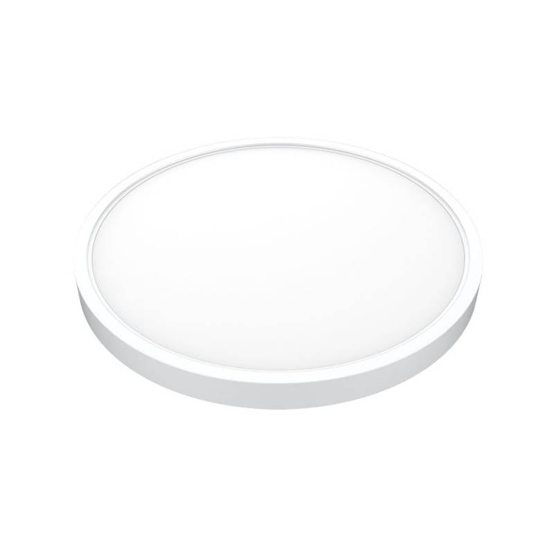 Plafón Led circular con aro más delgado y tan solo 24mm de altura lacado en color blanco.  Con un amplio ángulo de apertura para ofrecer una iluminación general con una elevada eficiencia.