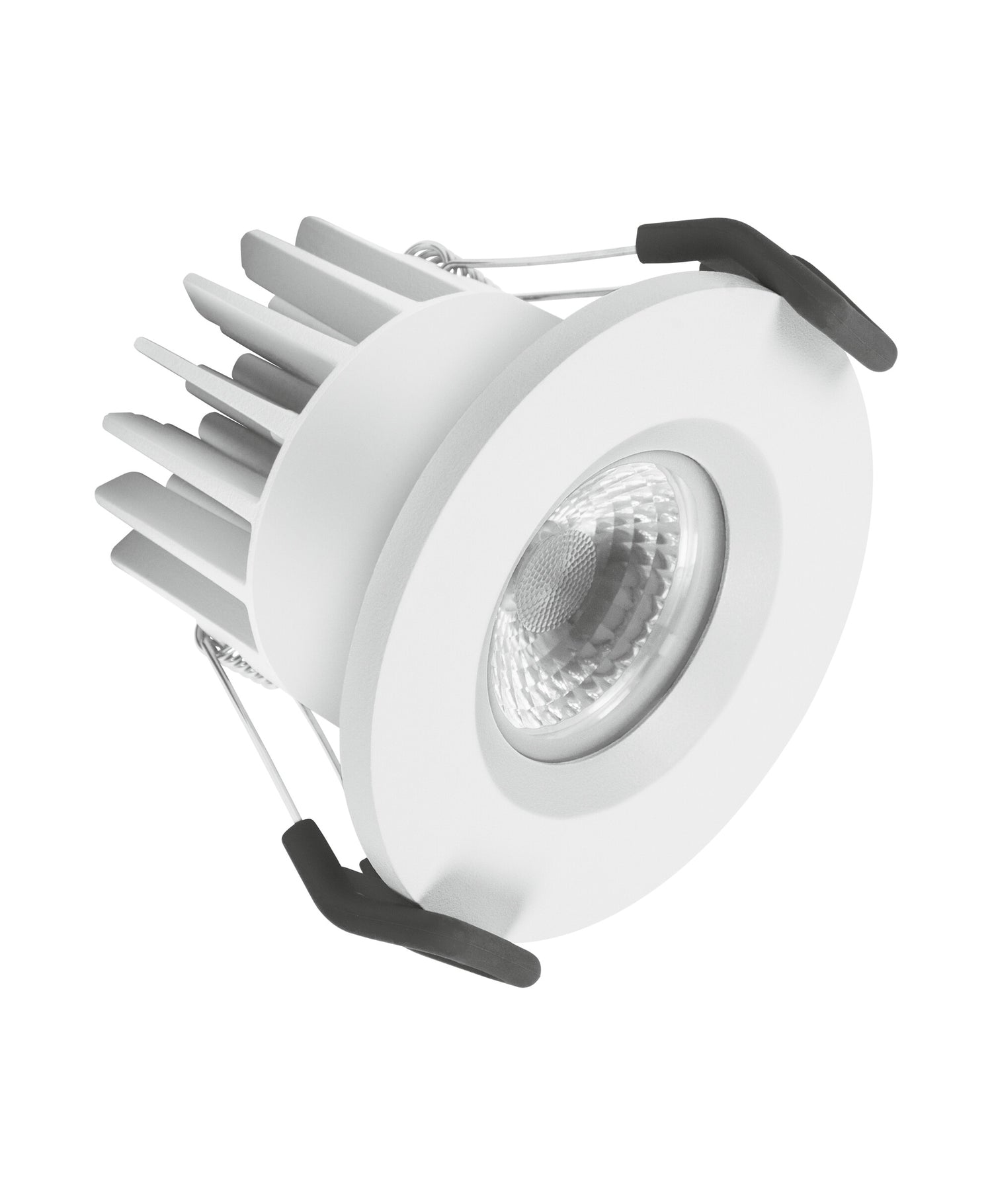 Foco empotrado, forma redonda, resistente al fuego. Características del producto: Resistente al juego (hasta 90 minutos, probado conforme a la norma EN 1365-2:2014 "Ensayos de resistencia al fuego para elementos portantes. Parte 2: Suelos y cubiertas"). Uso en exteriores y resistente al juego (hasta 90 minutos, BS476-20:1987 and BS476-21:1987). Compatible con aberturas de techo estándar de 68 mm. Consistencia del color inicial: = 4 SDCM. Tipo de protección de la parte frontal: IP65. Beneficios del producto: Alta eficacia luminosa. El diseño combina con la familia de luminarias LEDVANCE DOWNLIGHT. Ahorro energético de hasta 90 % en comparación con los focos spot halógenos. Diseño funcional y minimalista. Fácil instalación con una instalación rápida. Driver externo para una mayor flexibilidad (compatible con drives de reguladores seleccionados). Diseñado para una extra protección IP. 5 años de garantía. Áreas de aplicación: Sustituto de focos spot halógenos. Habitaciones de hotel. Restaurantes, bares. Baños. Iluminación de acento. Galerías, museos. Iluminación general. Exterior.