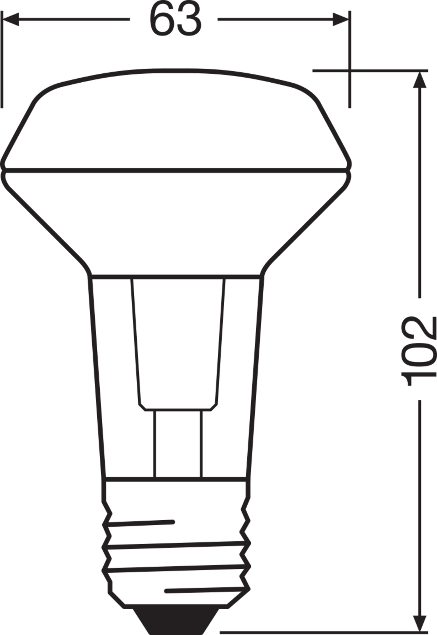 Lámparas LED reflectoras R63 con casquillo retrofit de rosca. Características del producto: Alternativa LED para lámparas halógenas de alta tensión. No regulable. Casquillo: E27. Lampara de cristal. Buena calidad de luz; índice de reproducción cromática ≥ 80. Vida útil: hasta 15.000 h. Beneficios del producto: Reemplazo rápido, simple y seguro sin recablear. Diseño, dimensiones y flujo luminoso comparable a los de una lámpara incandescente o halógena. Bajos costes de mantenimiento gracias a la larga vida útil. Sin radiación UV ni radiación de tipo IR cercano en el haz de luz. Luz instantánea al 100 %, sin tiempo de calentamiento. Áreas de aplicación: Comercios y salas de exposiciones. Aplicaciones domésticas. Aplicaciones comerciales. Iluminación de acento. Uso al aire libre únicamente en luminarias exteriores adecuadas.