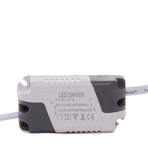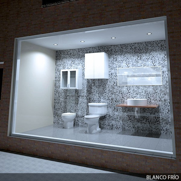 Esta placa está alimentada con un driver no dimable incluido en el paquete que debe ser conectado directamente a la red, con un conector de salida compatible con la conexión de la placa (12-24VDC, 300mA), adicionalmente se incluyen los accesorios necesarios para la instalación de la placa. Acabado en color blanco construido con aluminio.