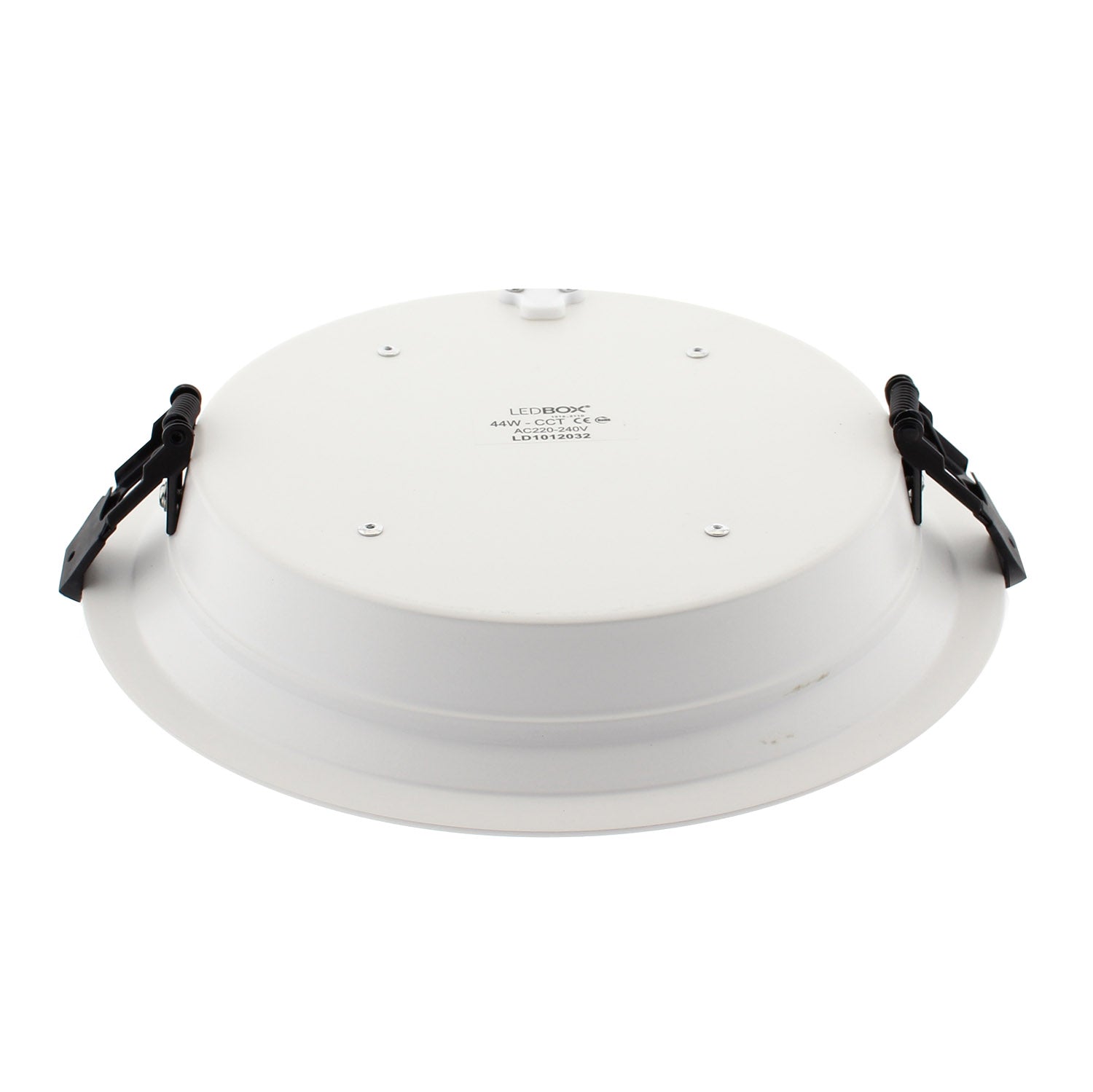 El Downlight Led Bol 44w incorpora selector de temperatura de color con el que puedes seleccionar el tipo de luz que más se adapte a tus necesidades: luz cálida (3000K), luz neutra (4000K) o luz fría (6000K) en la misma luminaria.