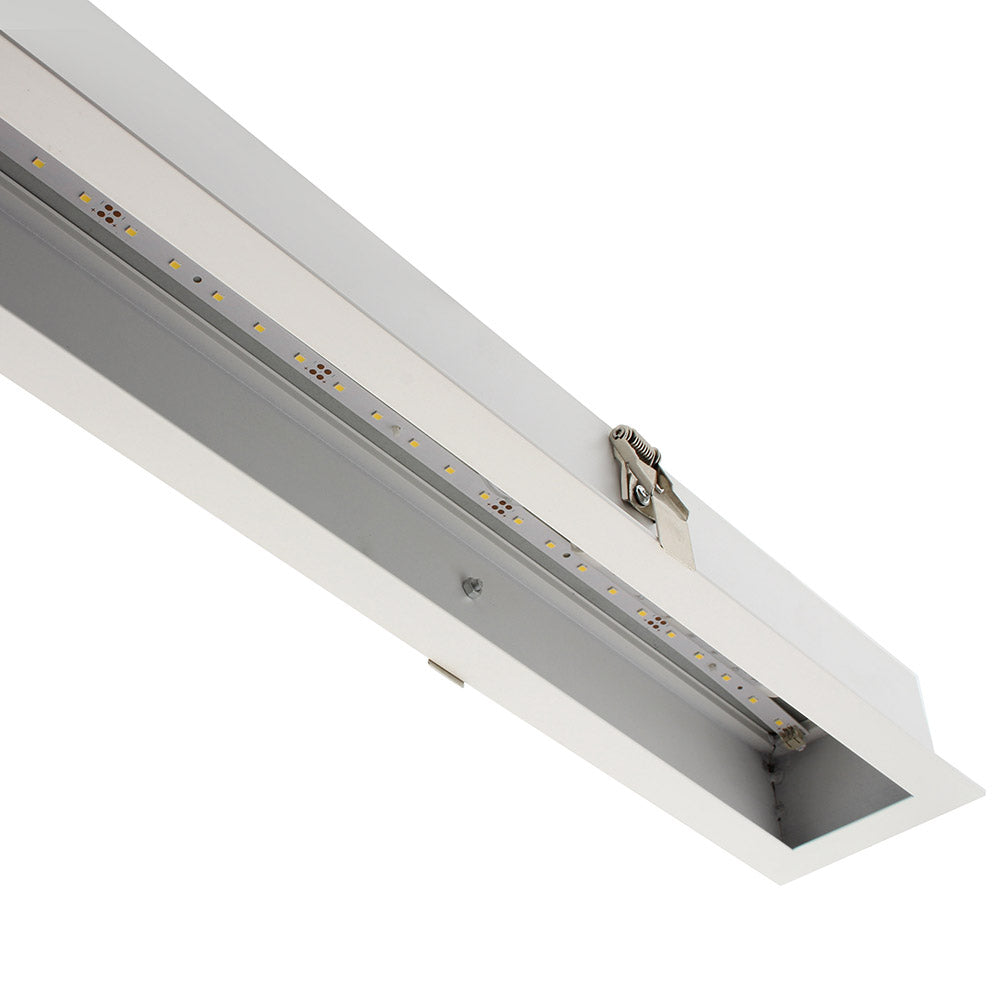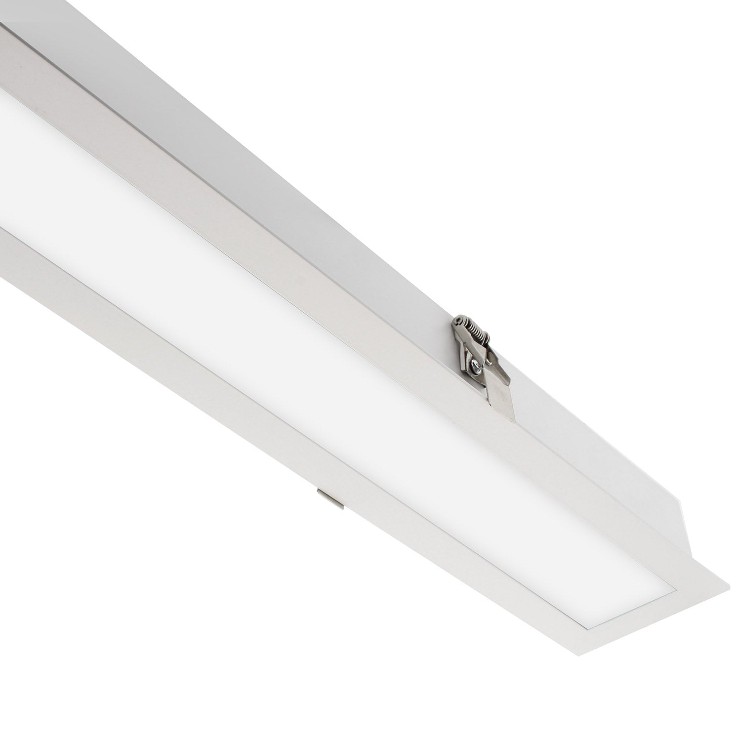 Luminaria empotrable lineal que ofrece una iluminación general a través del difusor de policarbonato opal que crea un ambiente perfecto para cualquier estancia.