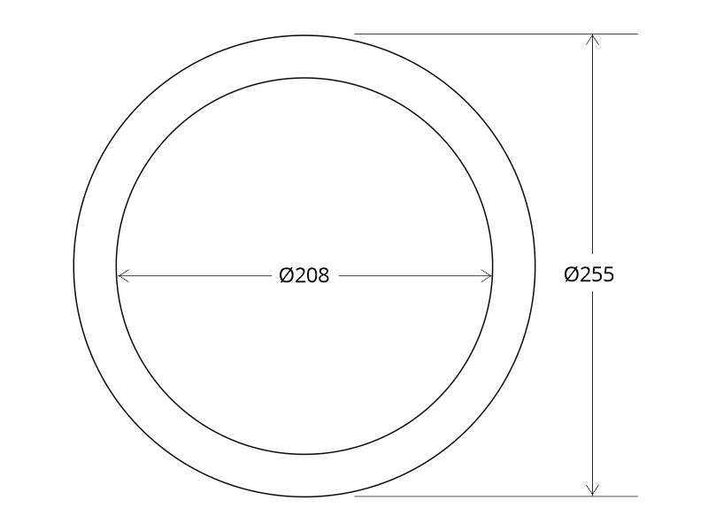 Aro Supletorio para Downlight con interior de Ø 208mm y exterior de Ø 255mm que permite adaptar la luminaria al hueco existente sin necesidad de realizar obras adicionales.