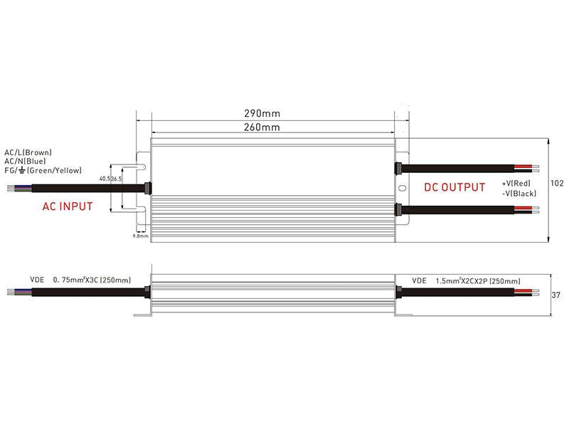 Fuente de alimentación estanca a prueba de agua para su uso en instalaciones exteriores