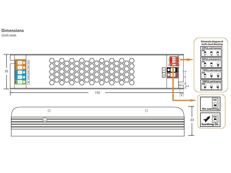 - Incorpora microswith para poder programar fácilmente la intensidad de salida: 25, 50, 75 ó 100% de intensidad.