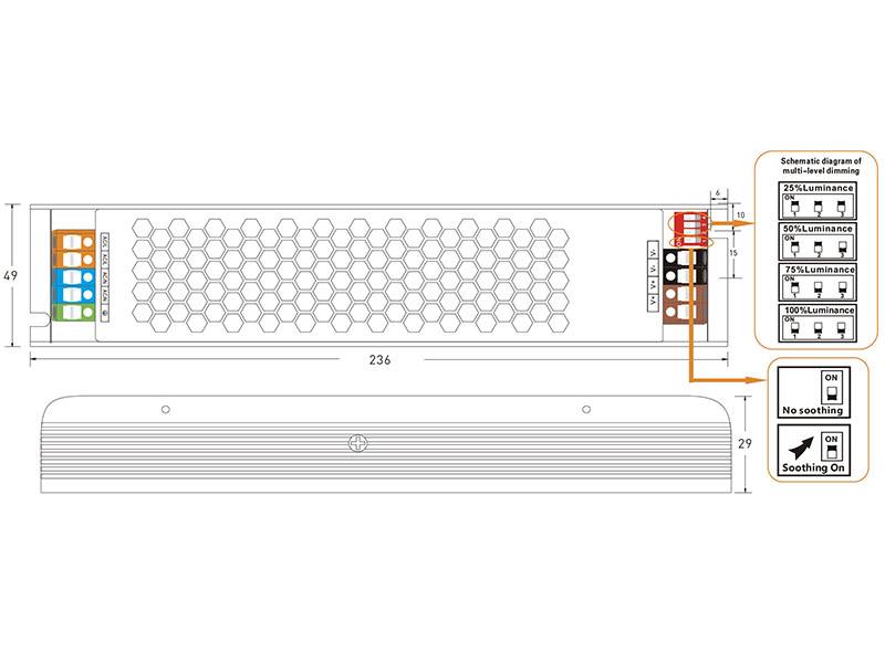 - Control de encendido y apagado gradual: Permite el encendido y apagado de 0 a 100% de forma instantánea o de forma gradual.