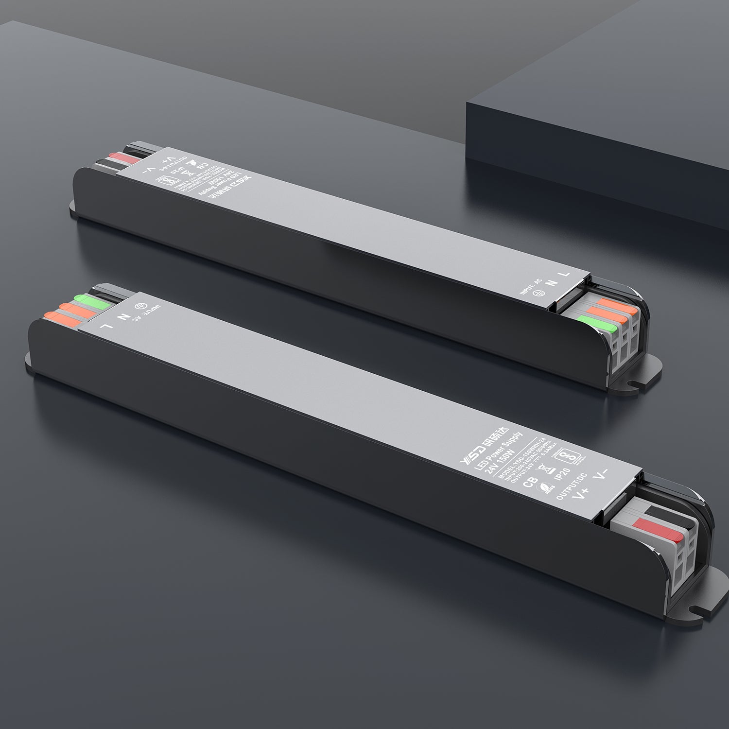 Fuente de alimentación con dimensiones muy reducidas y conectores rápidos para alimentación Led, refrigeración de la fuente por convección natural y protección contra sobrecargas y sobretensiones.