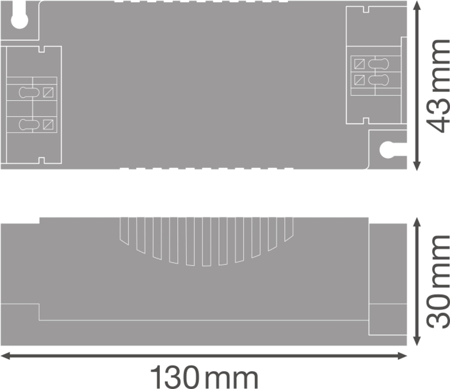 Driver LED de corriente constante regulación por de corte de fase. Características del producto: Disponible en 13 W, 18 W, 25 W y 35 W. Instalación independiente con kit opcional para sujetar cables. Dimmable on the leading edge and trailing edge. Regulable desde 10…100%. Durabilidad: hasta 50.000 h (a su máxima temperatura tc). Tipo de protección: IP20. Dedicada, corriente de salida constante. Bajo ripple < 5%. Tensión de suministro: 220…240 V. Frecuencia de funcionamiento: 50/60 Hz. Funcionamiento con menos de 60 V: Voltaje extra bajo de seguridad (SELV). Exceso de temperatura reversible y protección contra sobrecarga, cortocircuito y circuito abierto. Beneficios del producto: Permite la instalación con los reguladores de principio y fin de fase más comunes. 5 años de garantía. Carcasa fina para instalaciones estrechas. Alta eficacia y fiabilidad. Áreas de aplicación: Apto para luminarias LED y módulos LED. Válido para luminarias con protección clase I y II. Para instalaciones de interior SELV. Oficinas, centros comerciales, hospitales, restaurantes, hoteles. Equipamiento / Accesorios: Kit para sujetar cables y garantizar un alivio de presión adecuado.