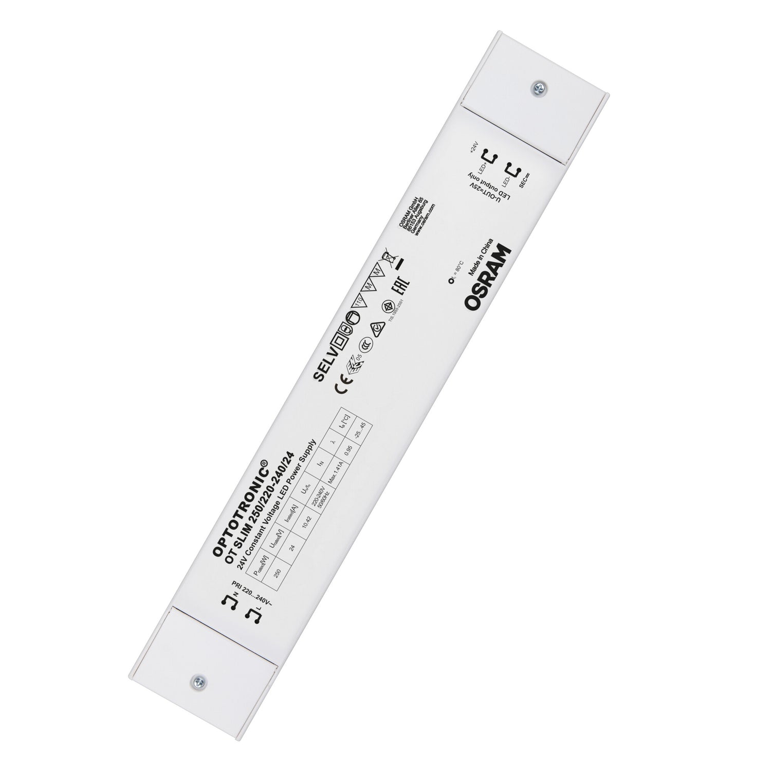 Fuente alimentación CV 24 V. Beneficios del producto: Ámbito de aplicación versátil gracias al rango de potencia de salida de hasta 240 W. Eficiencia y fiabilidad muy elevadas. Flujo luminoso constante para temperaturas demasiado bajas y demasiado altas gracias a Smart Power Supply. Áreas de aplicación: Apto para instalaciones SELV de interior y de zonas exteriores. Aplicaciones de exterior solo en instalaciones adecuadas. Apto para el uso en luminarias herméticas planas o instalación en techos suspendidos.