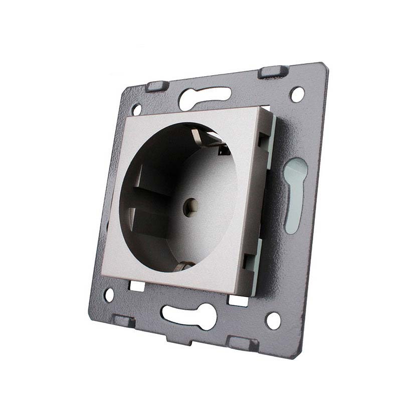 Mecanismo de empotrar EU, enchufe EU 16A tipo Schuko, gris, con cuerpo de aluminio.