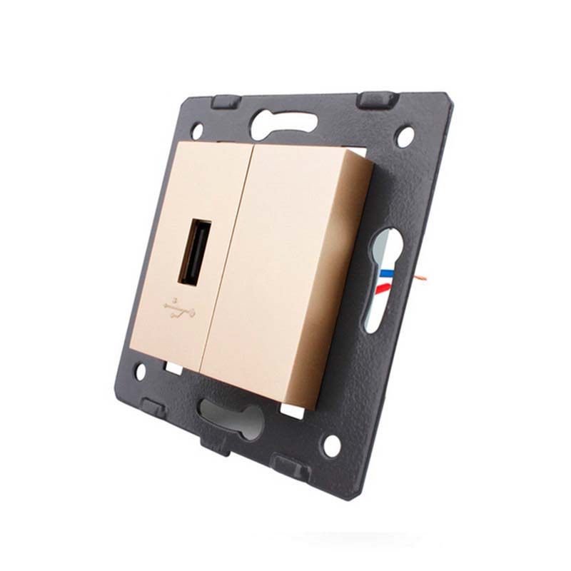Mecanismo de empotrar EU, 1 x toma USB, color golden, con cuerpo de aluminio.