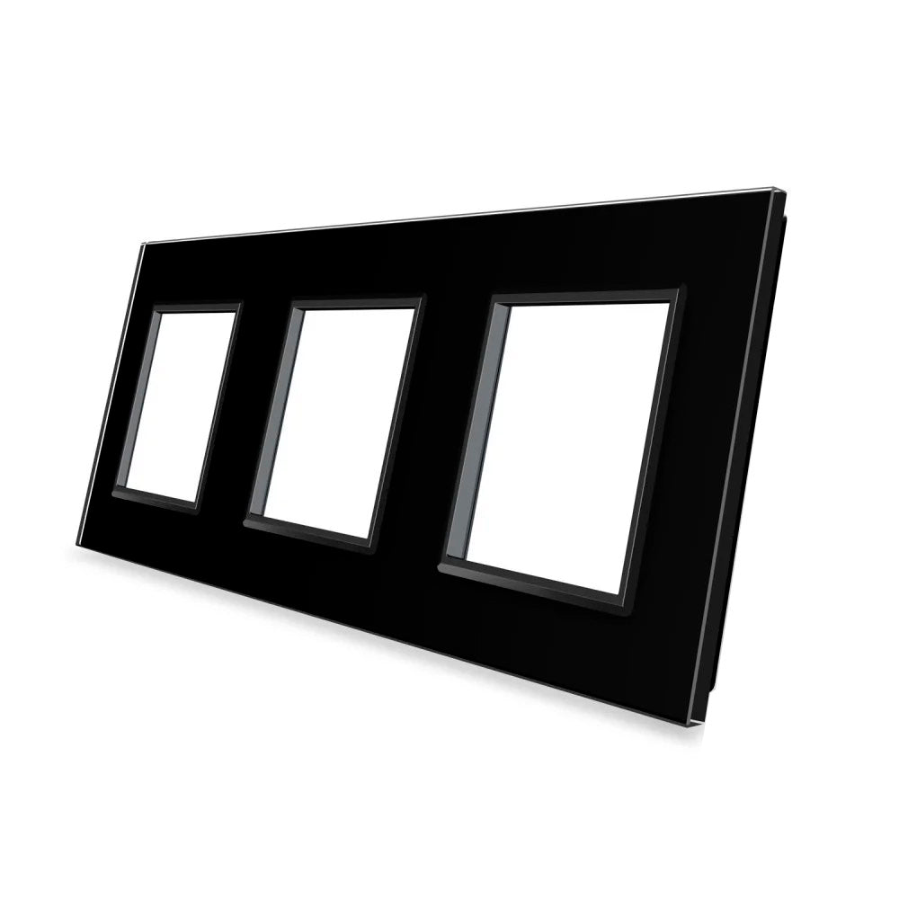 Frontal de cristal templado de 3 módulos + 3 enchufes, color negro. Incluye marco interior del color del frontal.