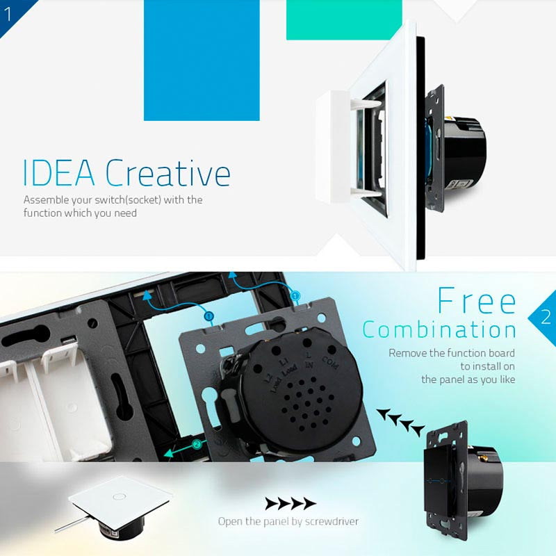 Frontal de cristal para mecanismos eléctricos de alta calidad con diseño minimalista que le da una apariencia elegante y estilo refinado. Con panel frontal de cristal templado pulido y acabados perfectos.