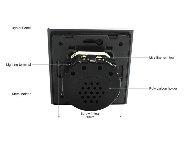Todos los mecanismos eléctricos disponen de alta resistencia al fuego gracias a su panel frontal hecho de vidrio templado que aporta gran seguridad y al a vez están protegidos contra la humedad gracias al panel frontal de vidrio totalmente impermeable.