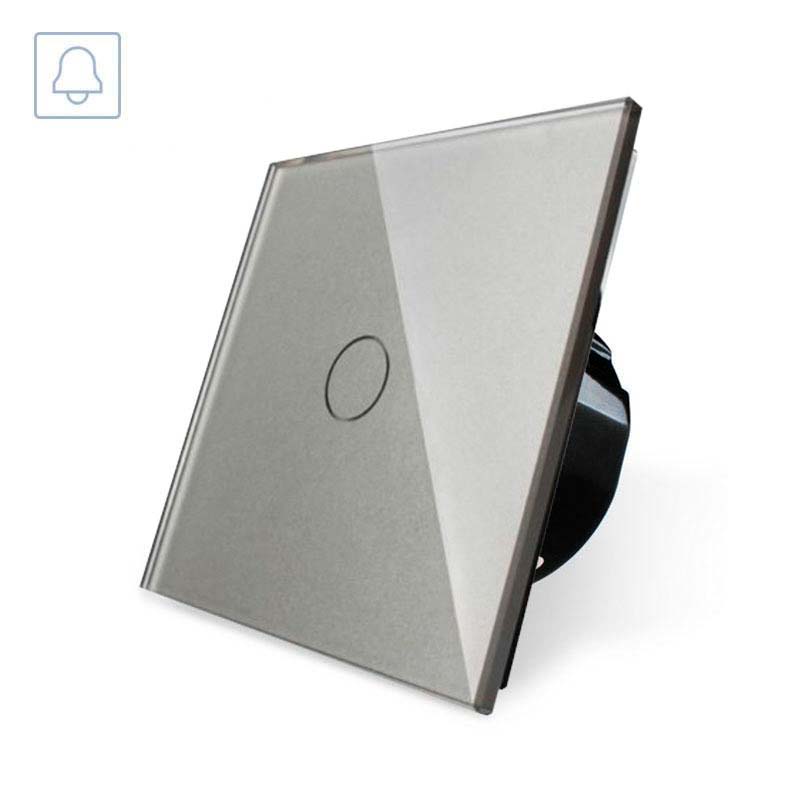 Mecanismo sencillo de 1 cuerpo con 1 botón, con función de pulsador - timbre. Mecanismo eléctrico de empotrar con cuerpo de aluminio y panel frontal táctil iluminado de cristal templado con acabado de alta calidad y diseño minimalista.