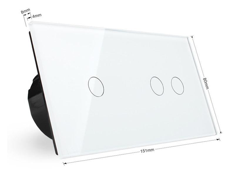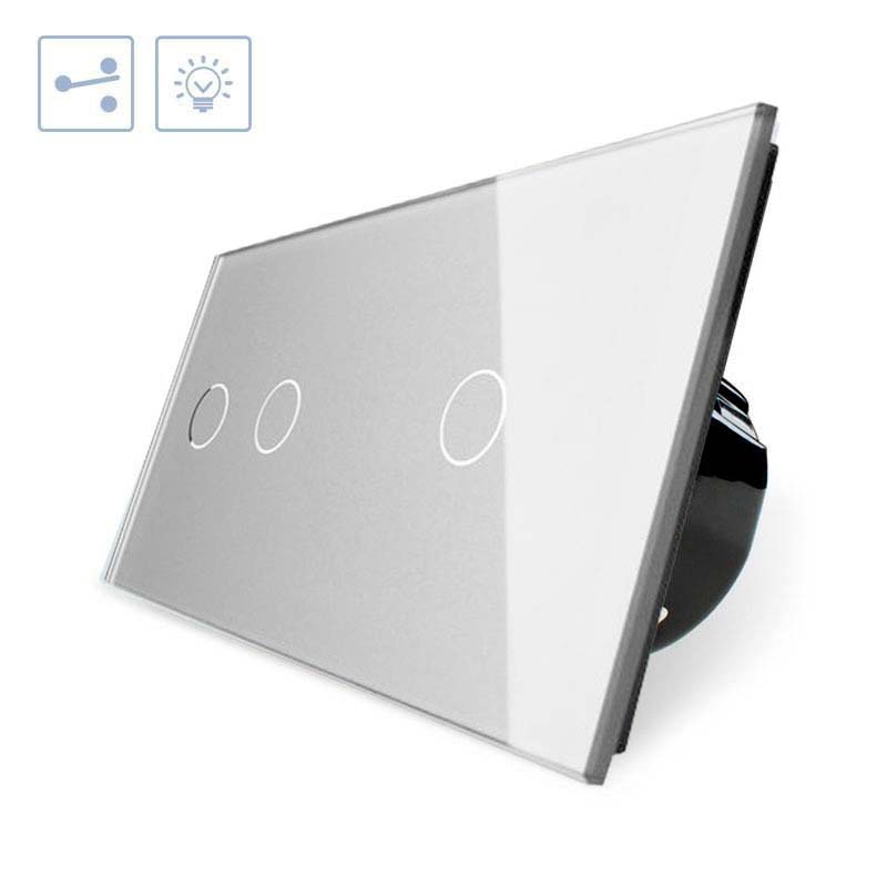 Conmutador 2 módulos táctil, 3 botones, frontal gris