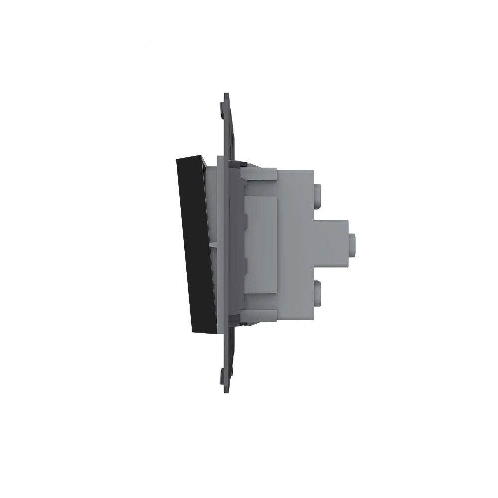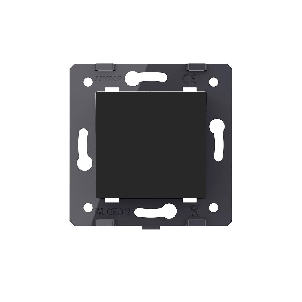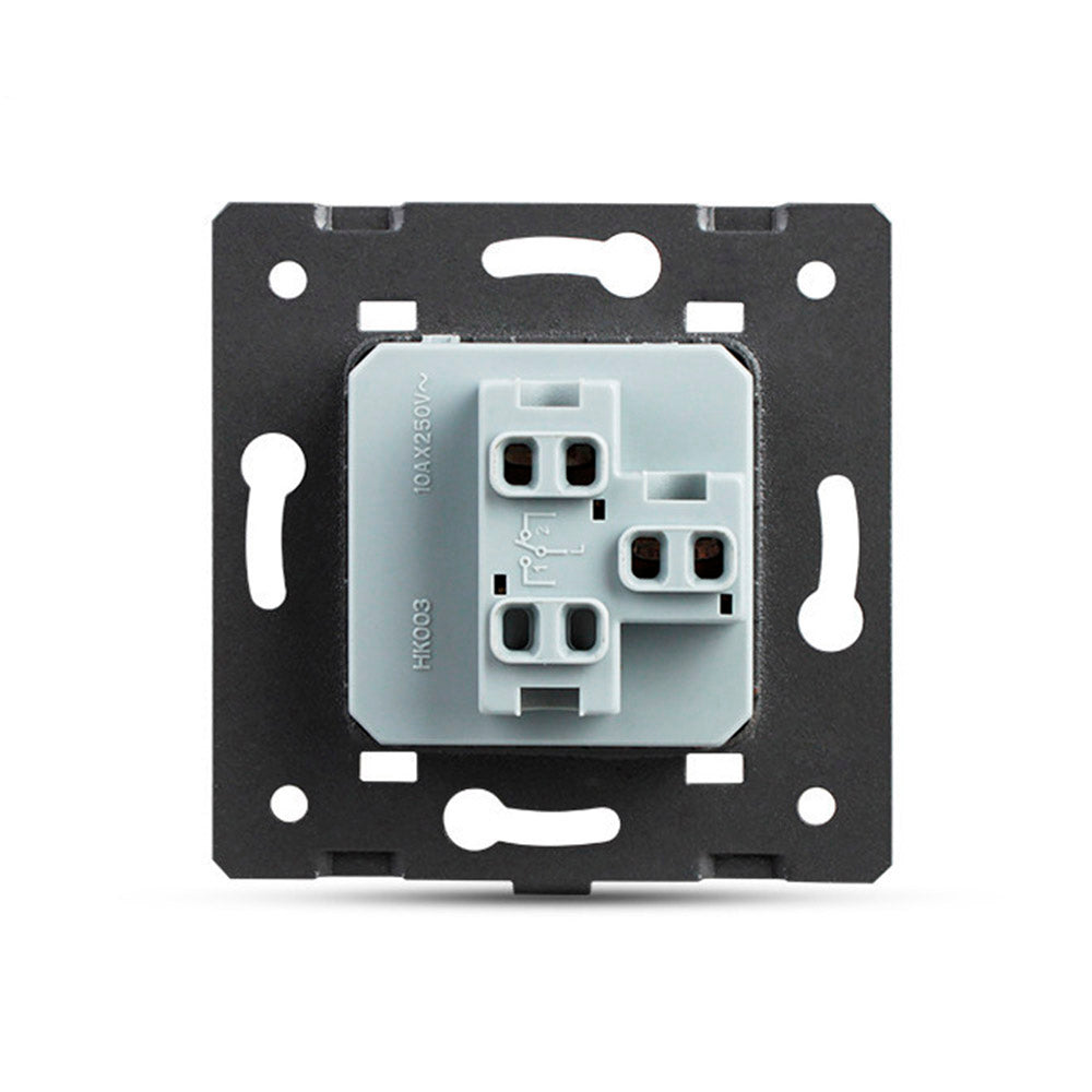 Mecanismo de empotrar EU, interruptor conmutador. Con tecla de color negro. NO INCLUYE marco metálico ni panel frontal de cristal. (el marco frontal de cristal incluye el marco metálico)