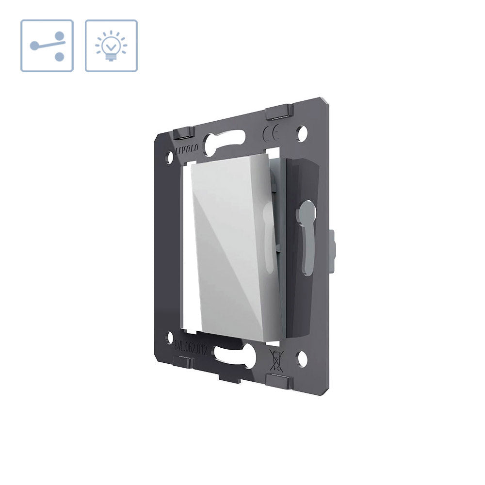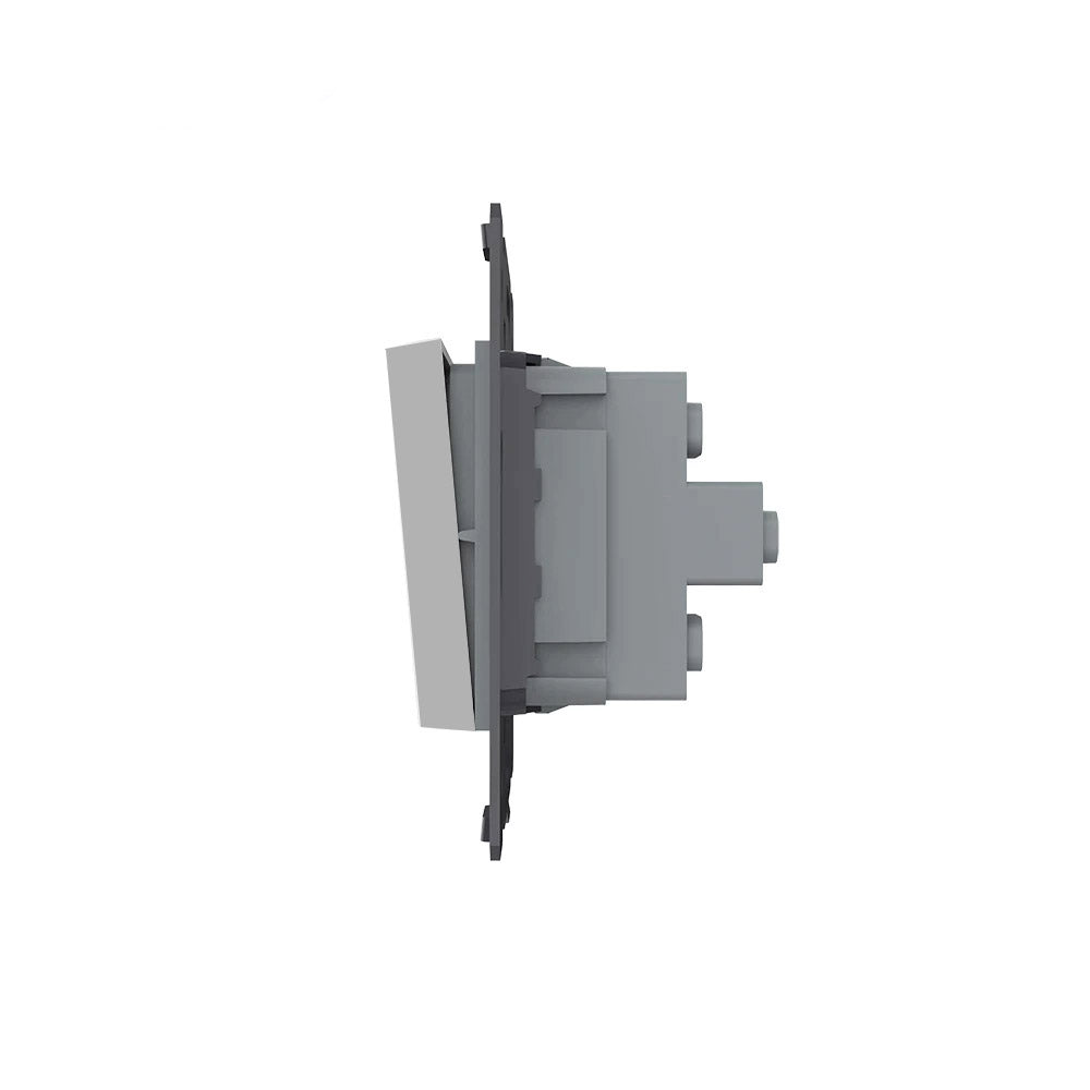 Mecanismo de empotrar EU, interruptor conmutador. Con 1 tecla media de color gris. NO INCLUYE marco metálico ni panel frontal de cristal. (el marco frontal de cristal incluye el marco metálico)