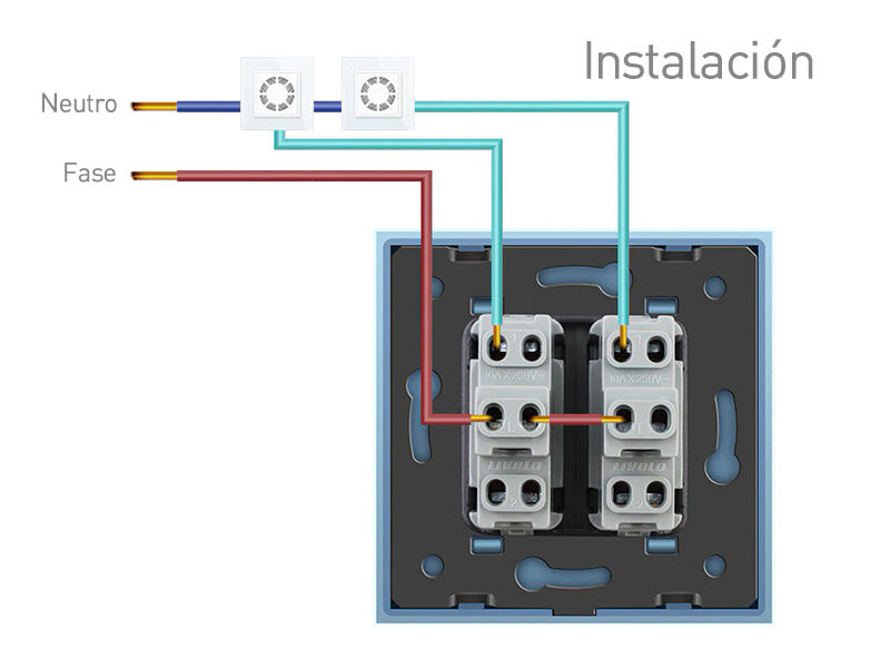 Instalación rápida y sencilla, el mecanismo está adaptado para instalar en caja universal de empotrar, con sistema de enbornamiento por tornillos.