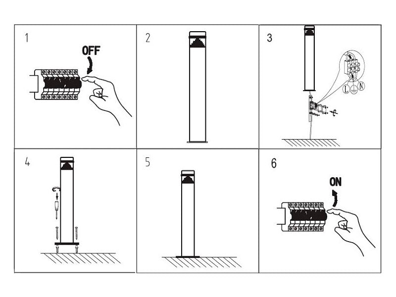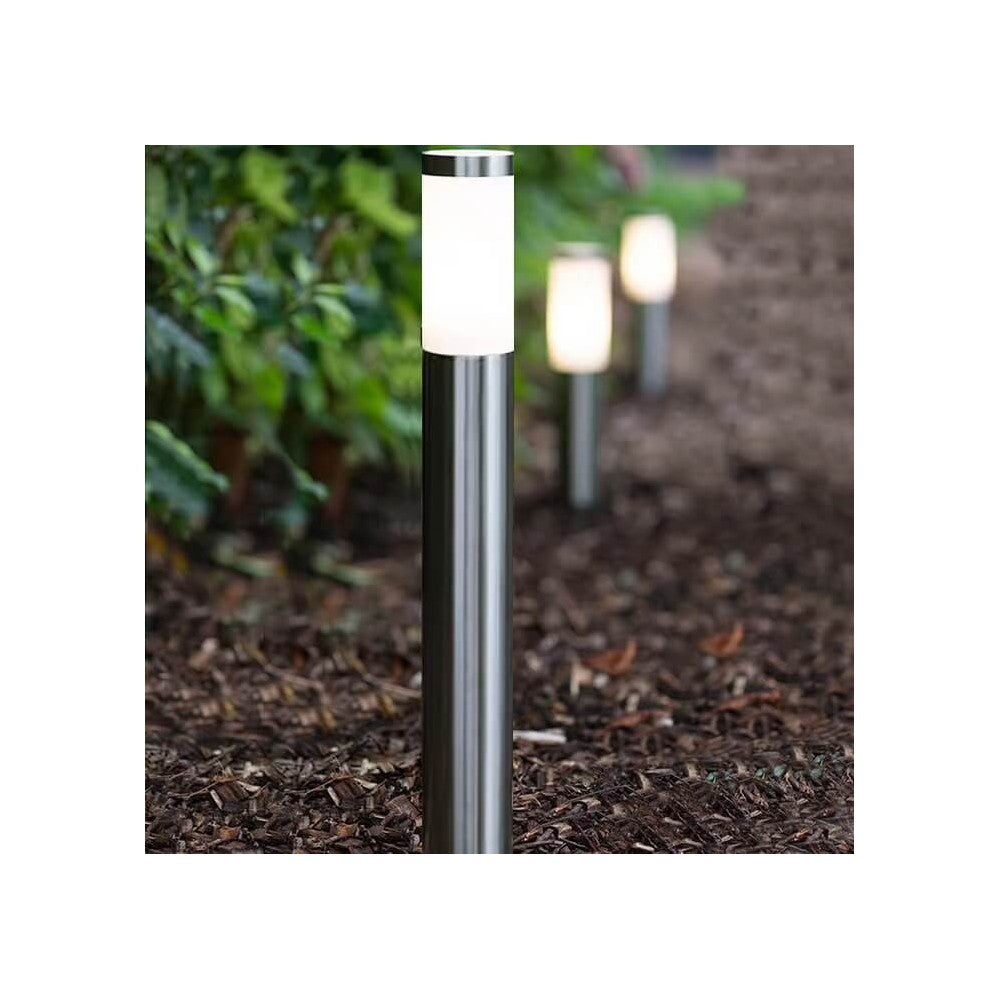 Farola de jardín de diseño moderno de fabricación robusta realizada en acero y policarbonato, con grado de protección IP54 y una protección eléctrica de clase I. Para bombillas led de tipo E27 (bombilla no incluida)