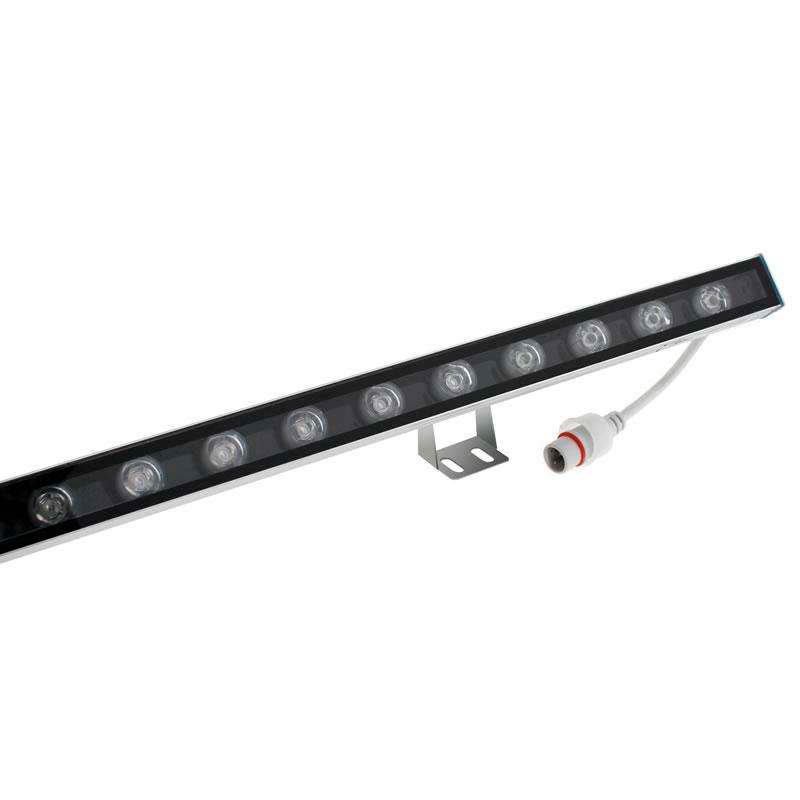 Proyector lineal RGB DMX512 auto-coding para la iluminación creativa y proyección de luz en paredes y fachadas. Ideal para el realce de objetos, arte, escenarios, construcciones históricas, museos. Estos bañadores lineales multi LED (24Leds) reproducen una distribución de luz precisa y uniforme.
