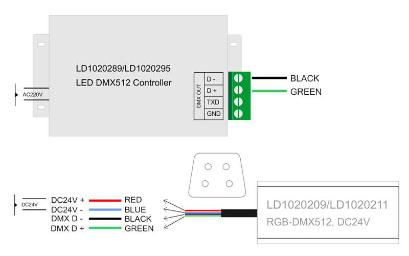 Es posible acoplar un controlador DMX MASTER y accesorios para su control, por ejemplo:
