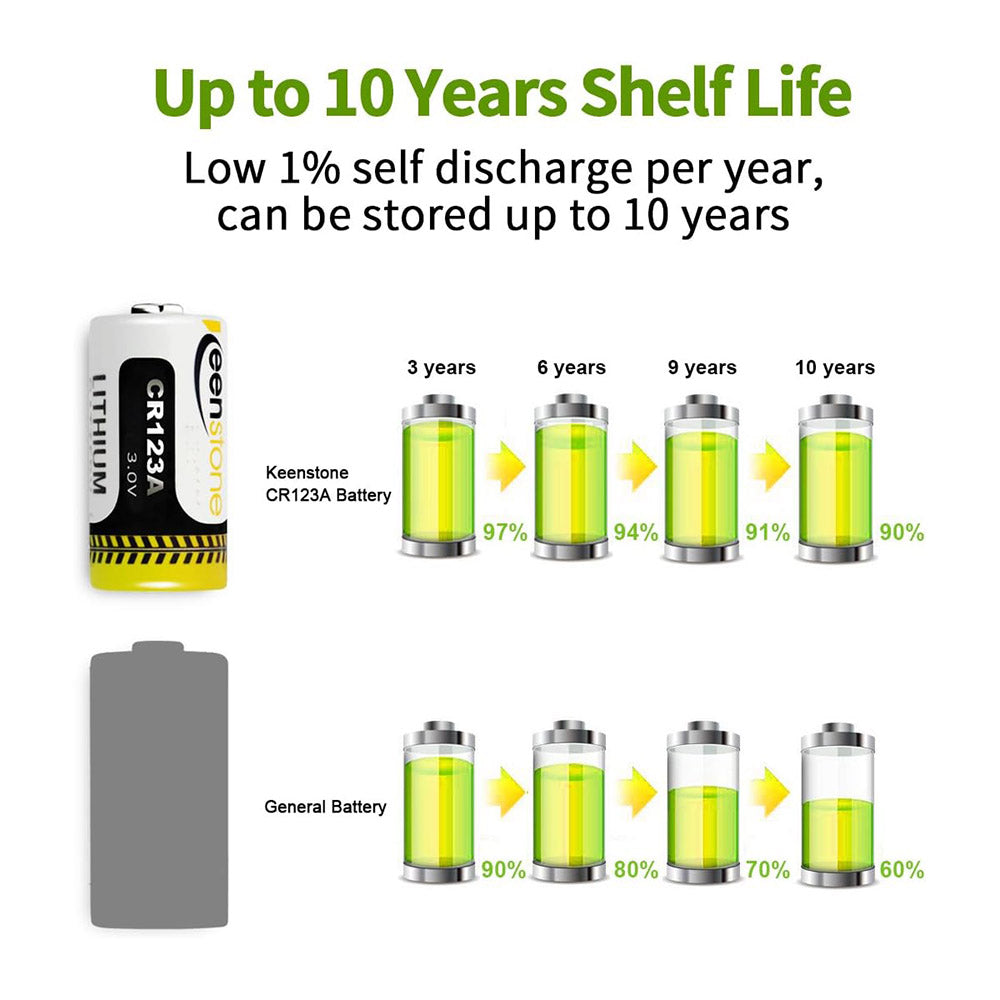Compatibilidad Reemplazo para las baterías 123, 123A, BR2/3A, CR123, CR123A, CR123R, CR17335, CR17345, DL123A, EL123AP, K123LA, L123A, SF123A, VL123A, 5018LC, IMPORTANTE: NO es recomendable usar en Arlo cámara.