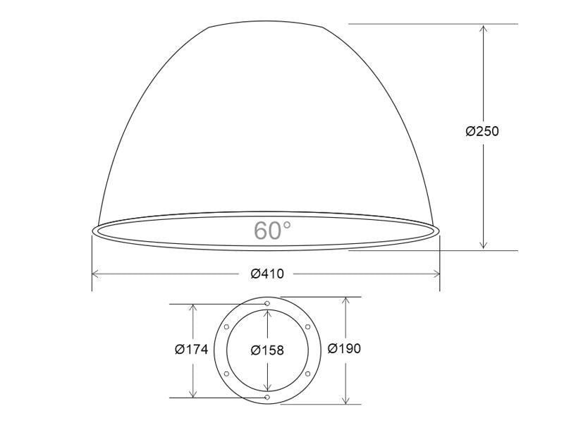 Reflector aluminio 60º para lámpara industrial.