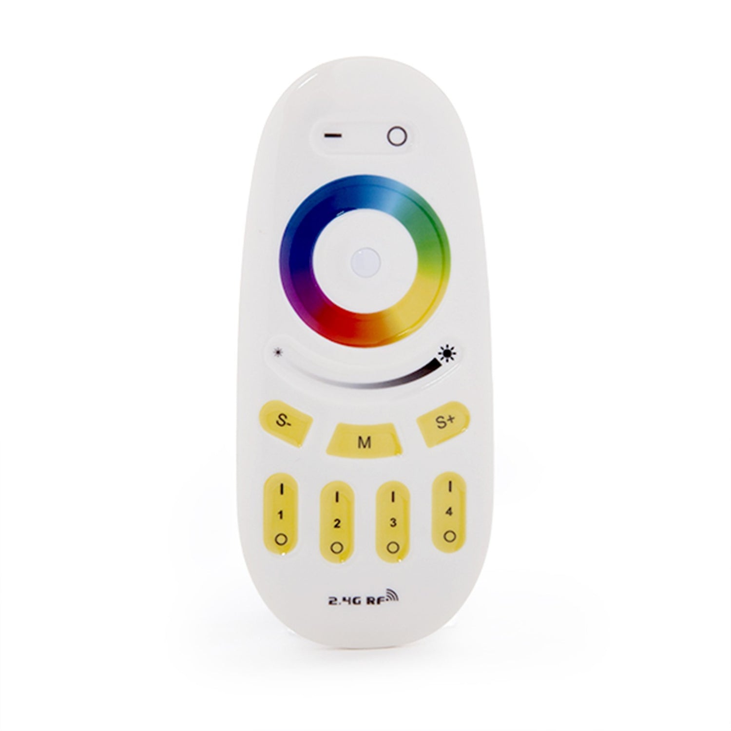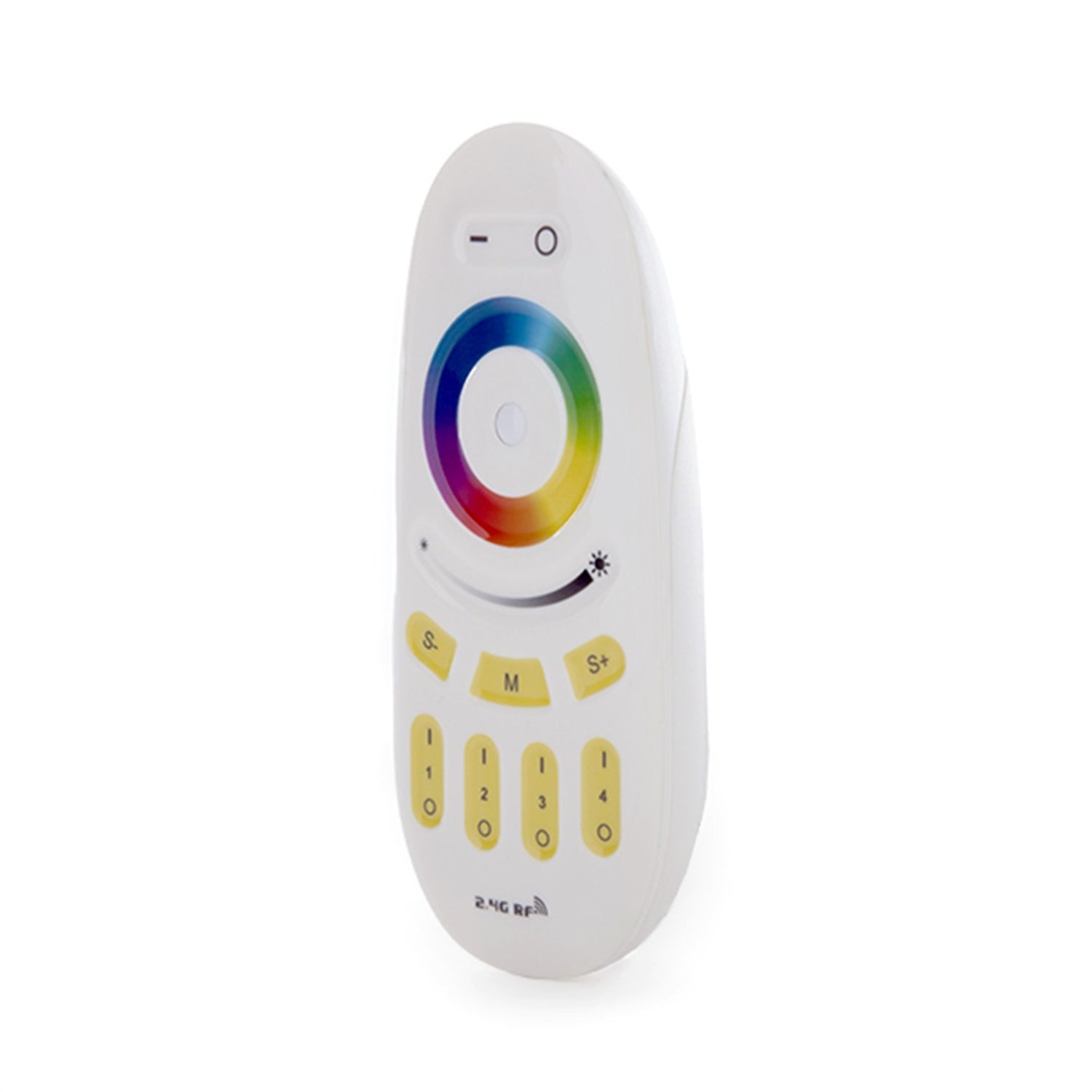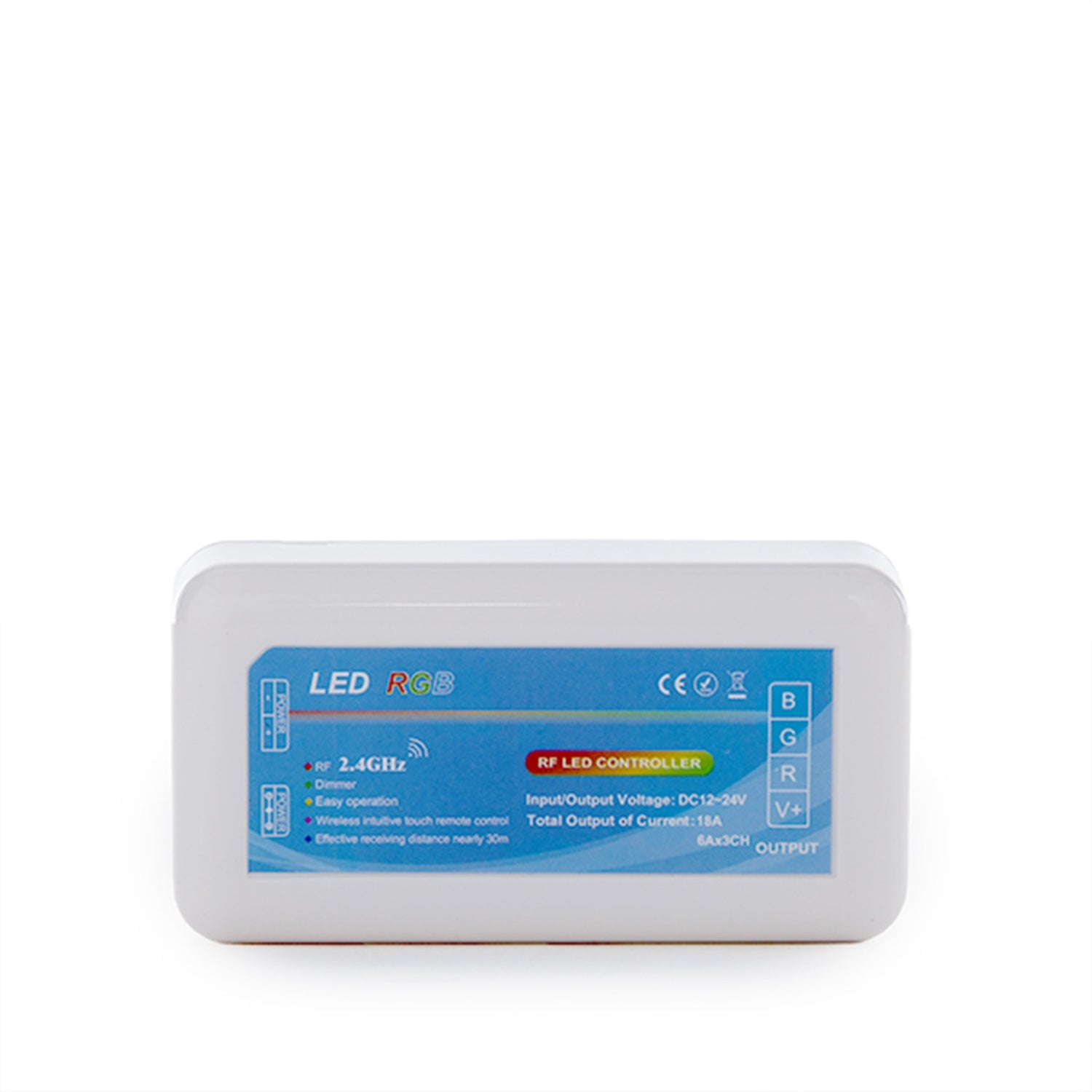 El controlador multi-zona 2.4G para tiras LED RGB cuenta con un sofisticado control de toda la gama de color y es capaz de gobernar múltiples zonas unificadas. El sistema consta de dos elementos, el control remoto (mando) de RF y el propio receptor, para lograr un control integrado de múltiples áreas dentro del rango de distancia efectiva y satisfacer así, las crecientes demandas de control ambiental del mercado de iluminación LED. Se utiliza para el control de luces LED RGB de bajo voltaje tales como: tiras de LED, módulos de LED, LED luces de cadena y otras lámparas de tipo LED RGB a voltaje constante.