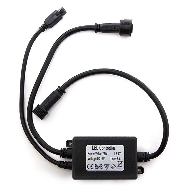 Mediante el controlador RGB IP67 con mando a distancia IR (infrarrojos)ref. SC-Z102 para focos LED de balizamiento es posible controlar el color y el brillo de las luces RGB, así como el cambio secuencial de velocidad. Este controlador de LED se puede combinar con todo tipo de focos RGB de balizamiento de bajo voltaje (12VDC exclusivamente), puesto que la conexión está específicamente diseñada para esta clase de focos. La principal ventaja del controlador RGB IP67 para focos de balizamiento es que incorporan el llamado “efecto memoria”.