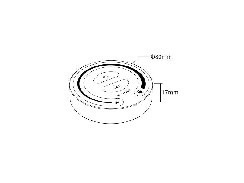 El mando RF monocolor ROUND con control táctil incorpora la más avanzada tecnología de regulación digital compatible con todos los controladores dimming de MyLight. Se alimenta con 2 pilas AAA.