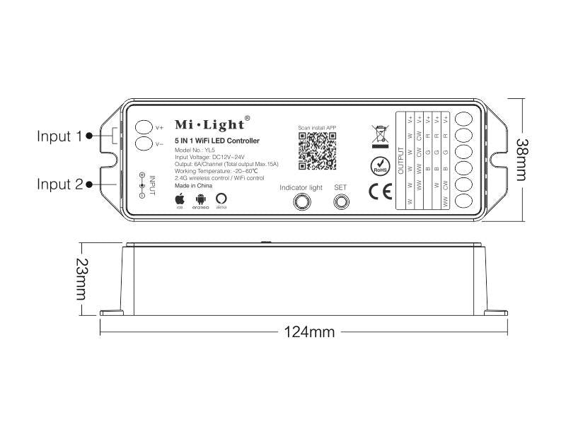 Controlador 5 en 1, WiFi APP, Alexa Voice Control