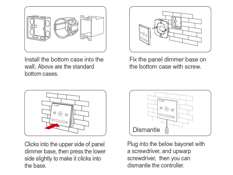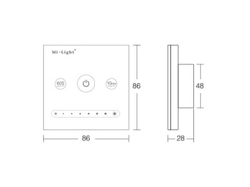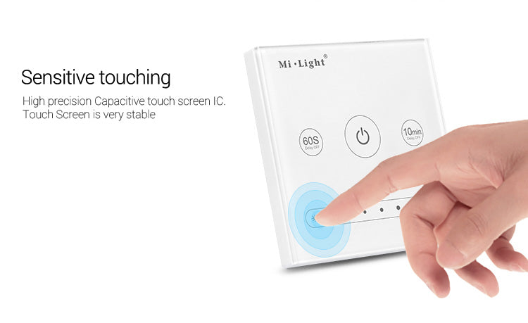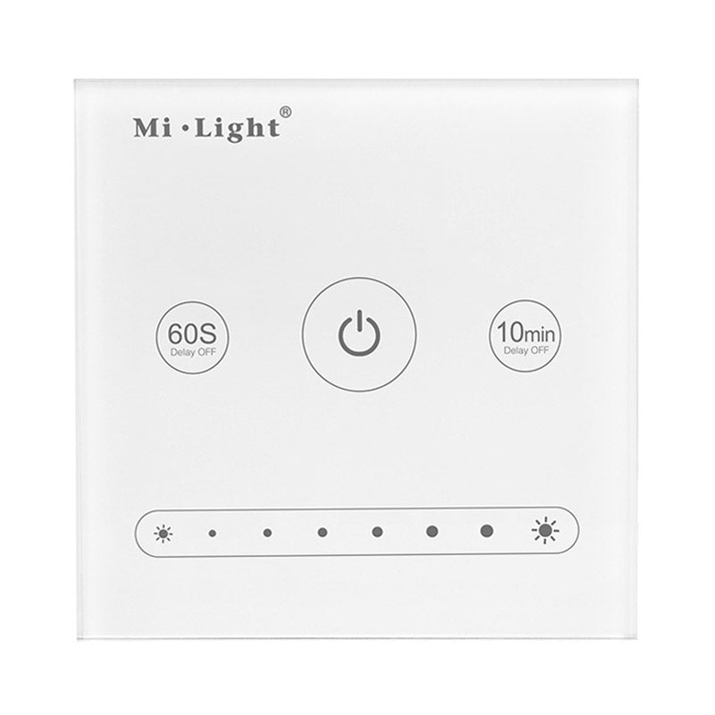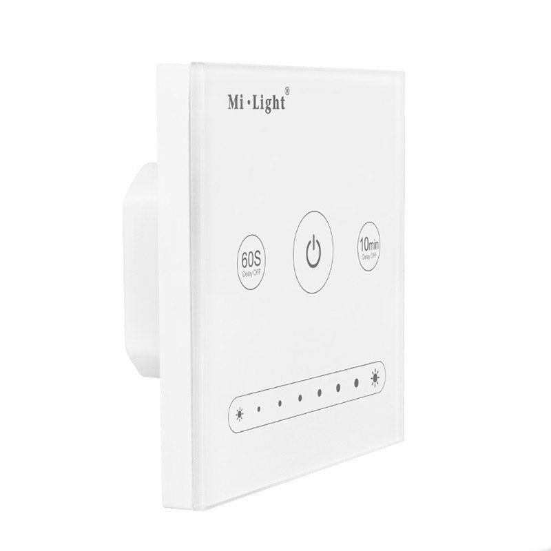 Panel táctil empotrable de gran calidad y cuidado diseño, con señal de salida 0-10V que permite un control profesional de dispositivos led con este tipo de regulación.