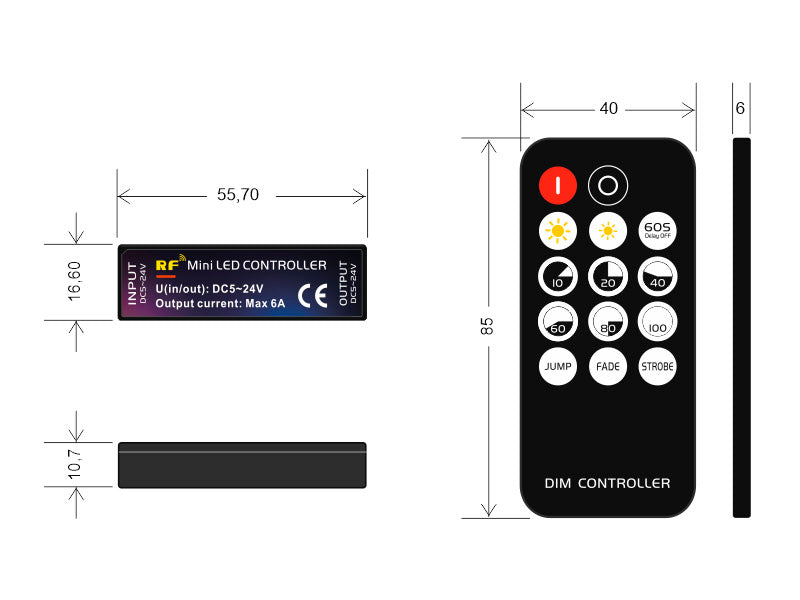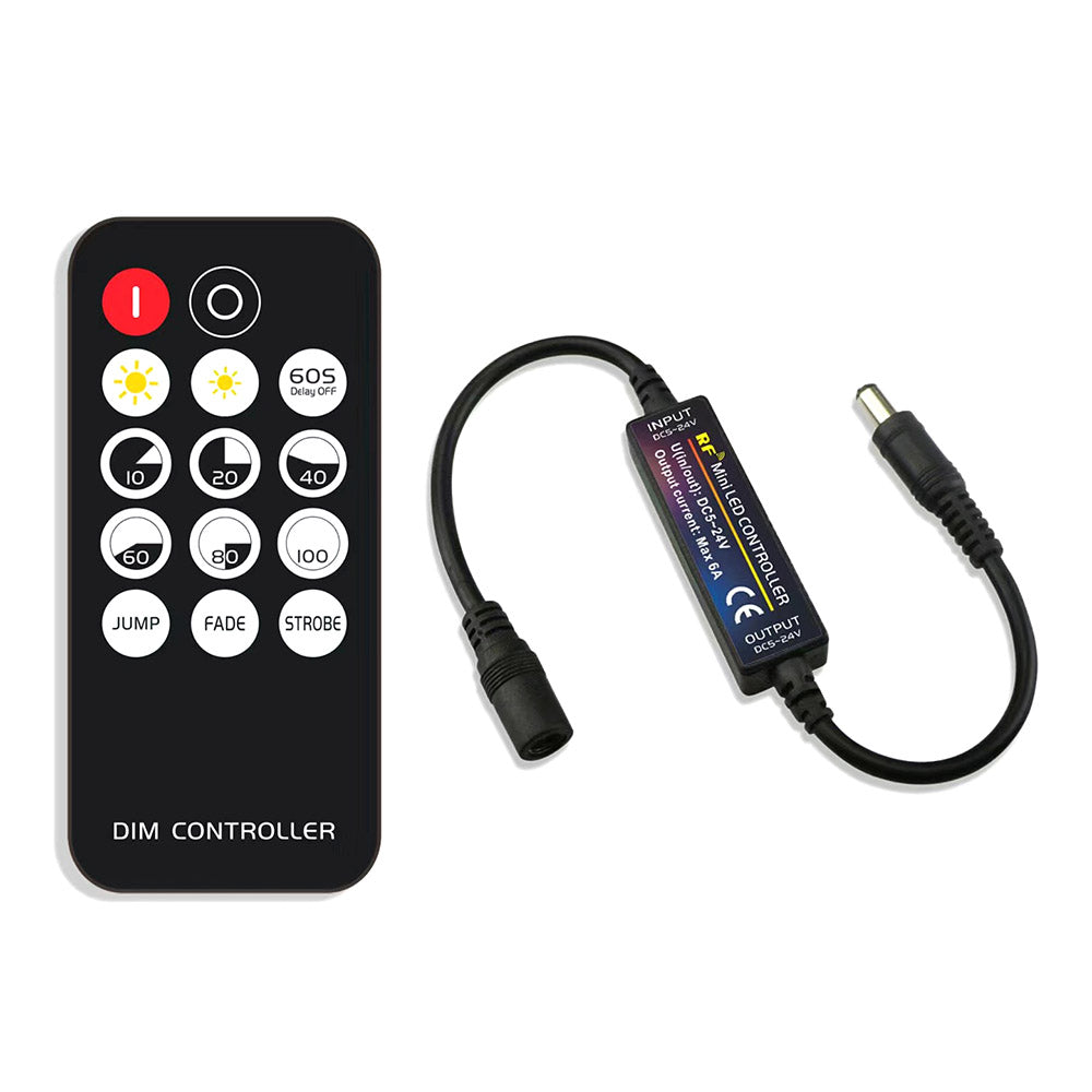 Nuevo Dimmer de reducido tamaño con sensor RF que se conecta directamente a la tira led monocolor y permite regular la intensidad de luz de forma fácil y cómoda mediante el mando a distancia incluido.
