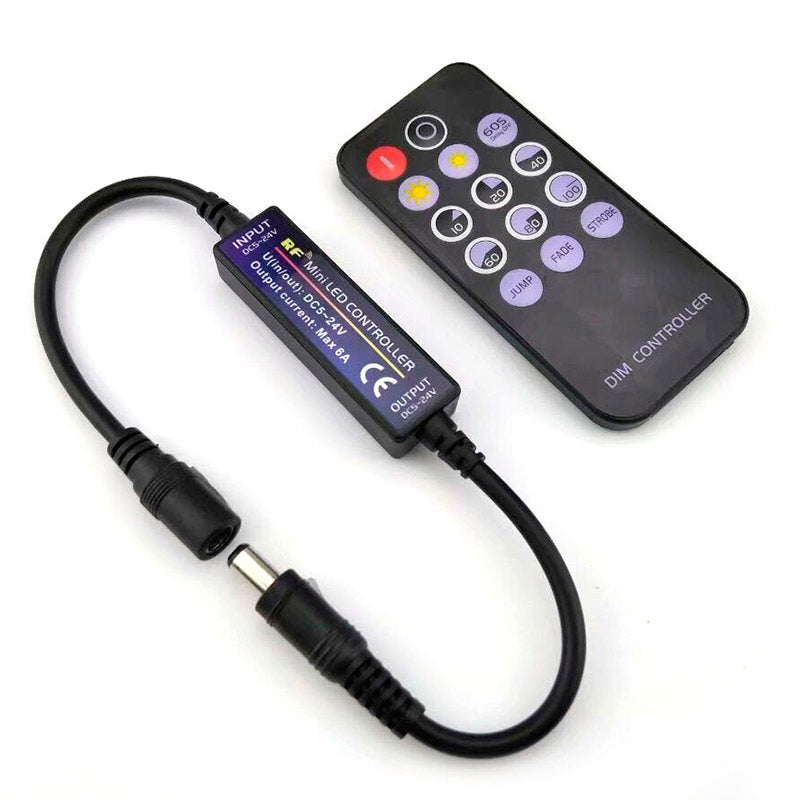 Nuevo Dimmer de solo 5cm de longitud que se conecta directamente a la tira led monocolor y permite regular la intensidad de luz de forma fácil y cómoda mediante el mando a distancia incluido.
