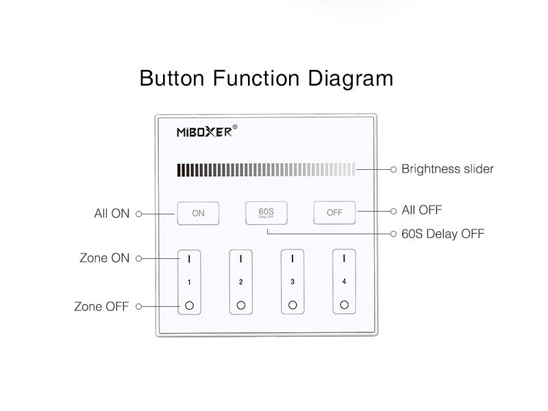 - Temporizador 60seg, todas las luces se apagan a los 60 segundos después de pulsar el botón 60s