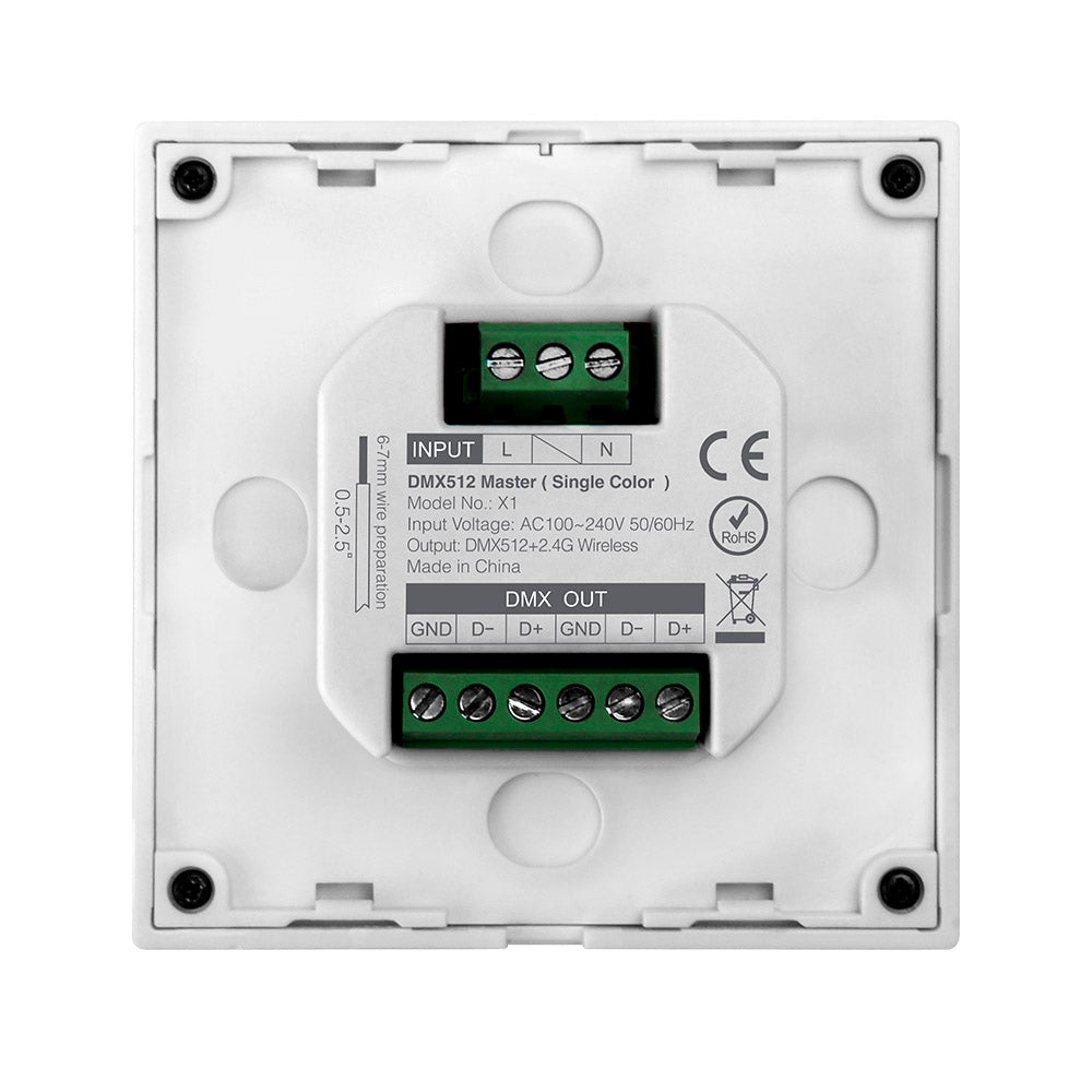 Master DMX512 y soporte RDM, 1Ch monocolor. Permite el control de hasta 4 zonas de forma independientes o conjunta. Con emisor de comandos RF para control con mando a distancia y WiFi APP (opcional).
