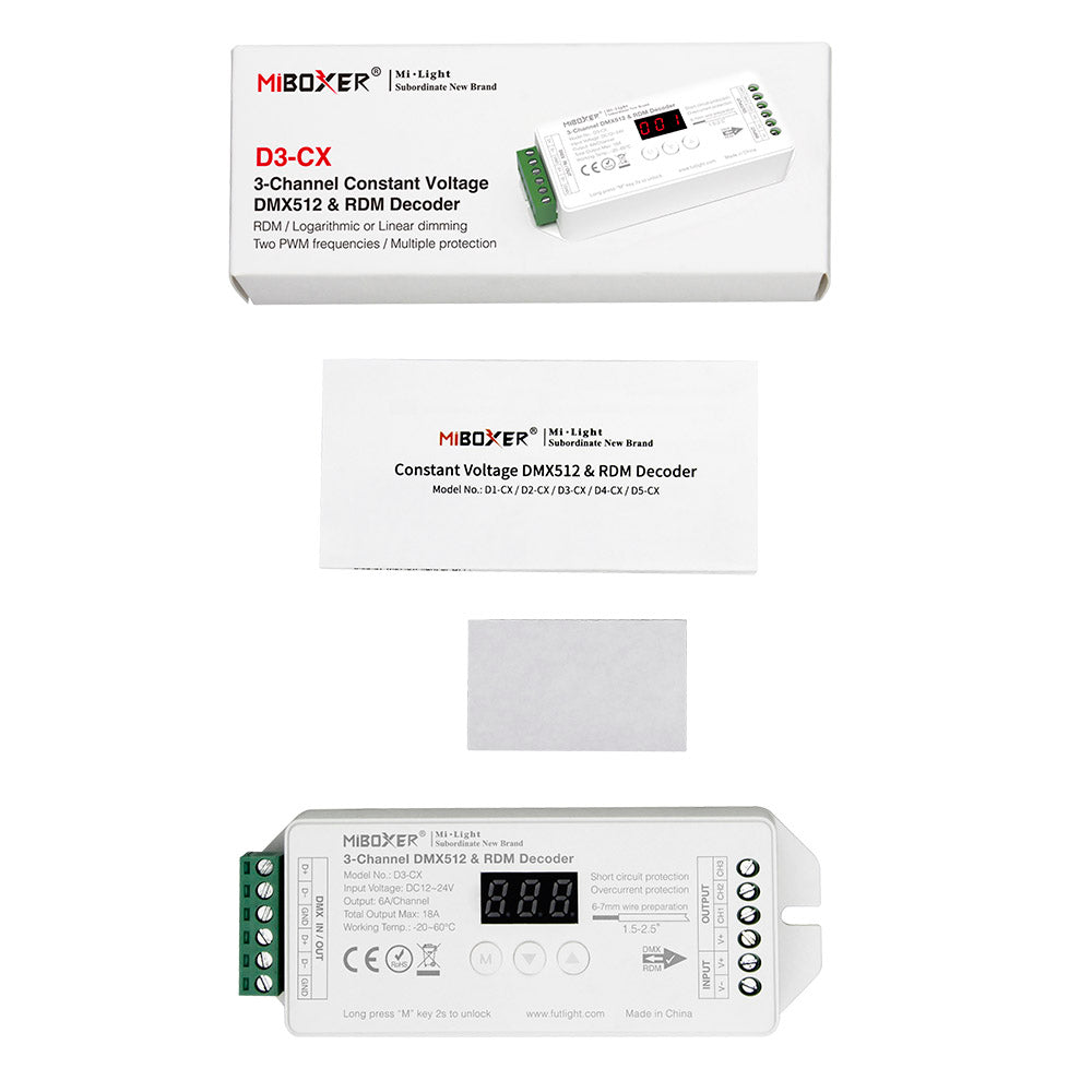 - Señal de salida DMX512, cumple el protocolo estándar DMX512 y soporte RDM. Cumple con DMX12, DMX512(1990), DMX512-A, RDM V1,0 (E1.20-2006 ESTA standar)
