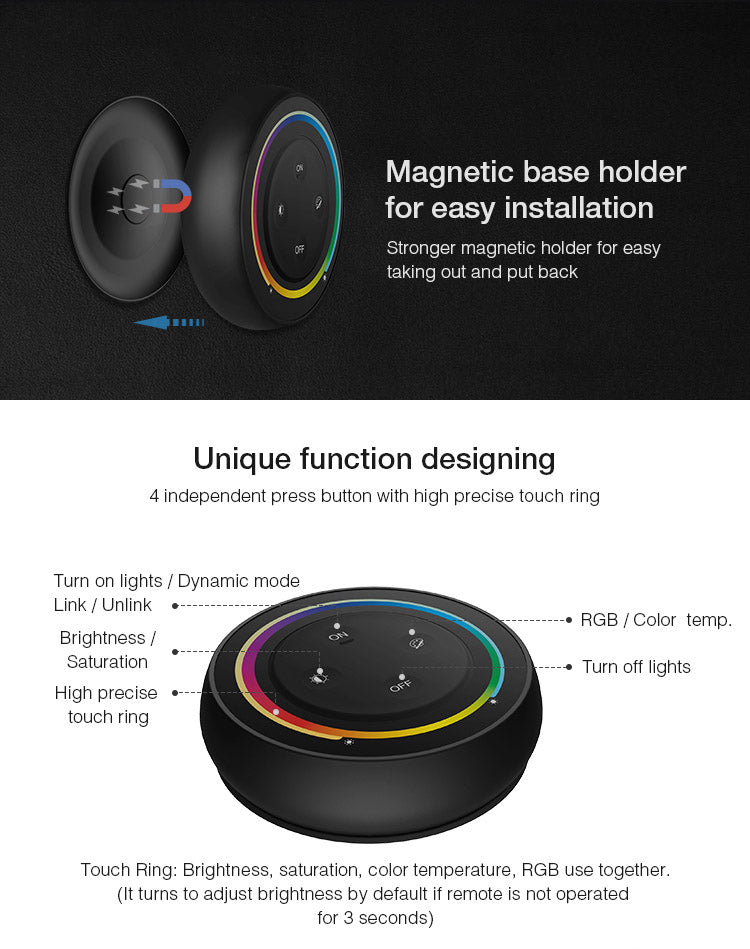 Mando RF RGB+CCT ROUND Magnetic táctil, negro