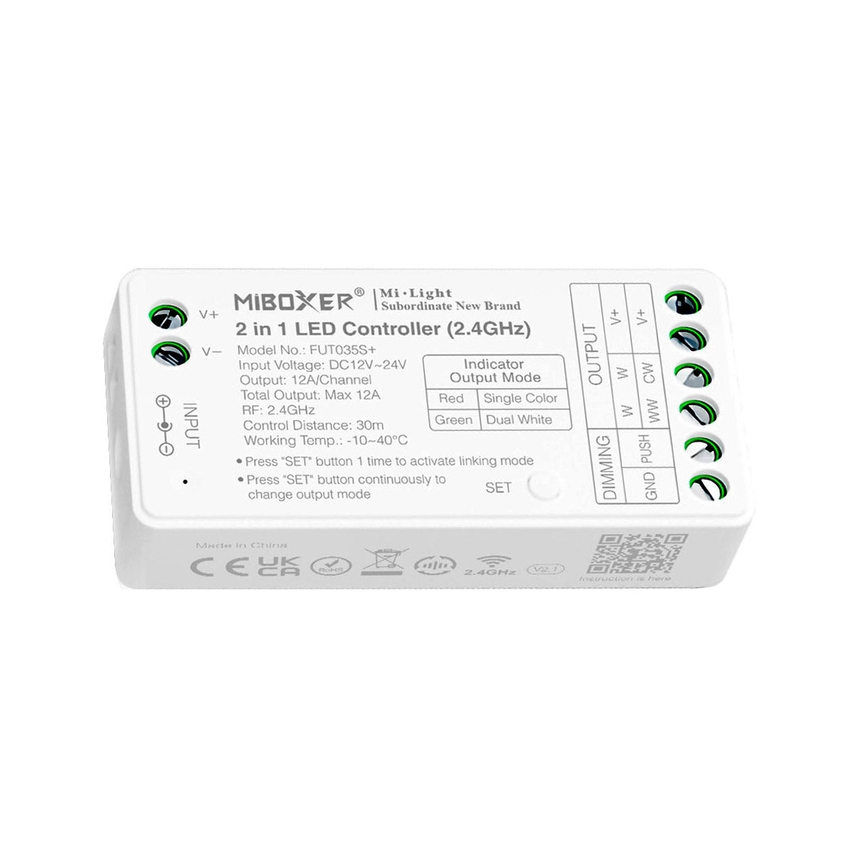 Controlador 2.4G RF, DC12-24V, 12A, 2 en 1 monocolor + CCT + mando