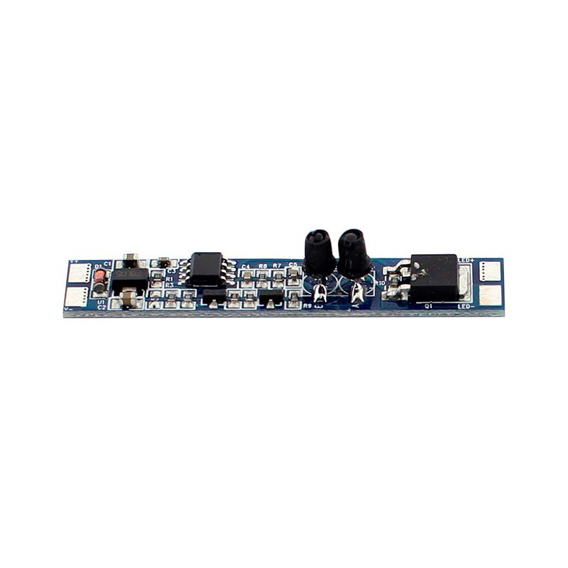 Sensor IR de reducido tamaño (55x10mm) para instalar en un perfil que se conecta directamente a la tira led monocolor y permite encenderla automáticamente cuando detecta movimiento (5-10cm)