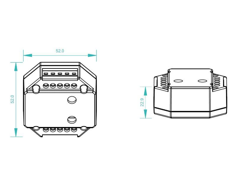 - Controlado por un interruptor externo, con un tamaño compacto, se puede colocar fácilmente en una caja de 86x86mm.