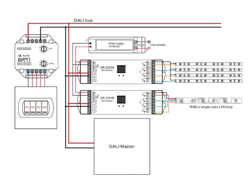 - Con la función de deteccion de bus, un canal de bus DALI puede instalar varios controladores de regulación.