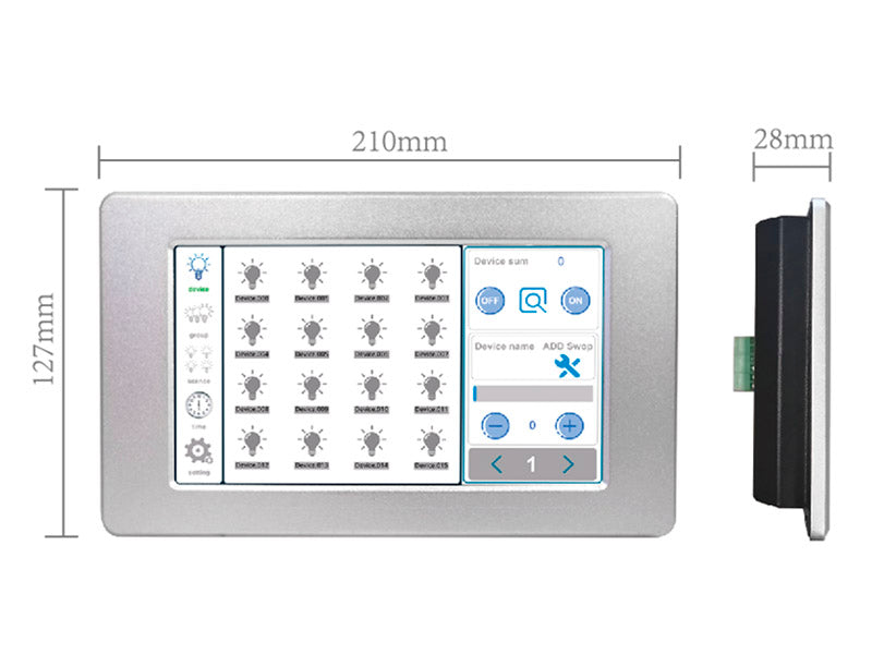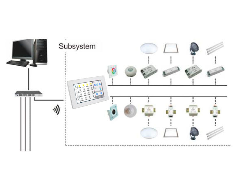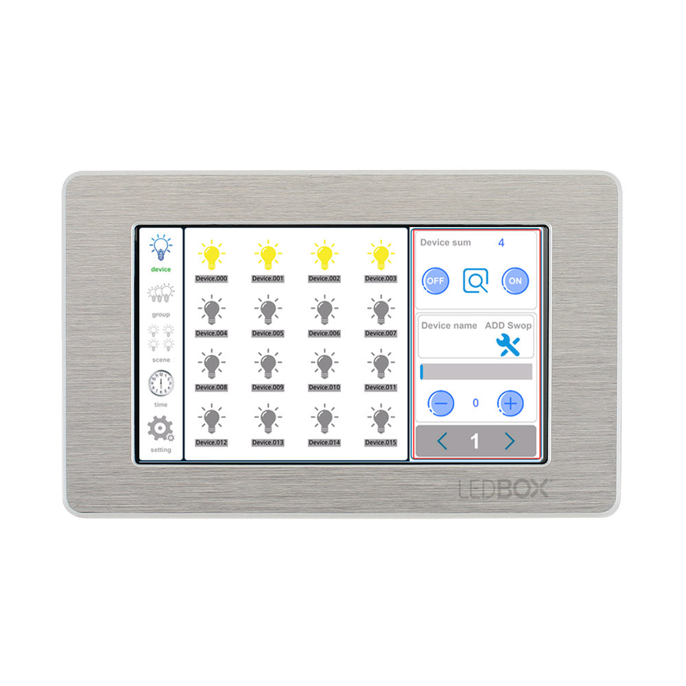 Controlador DALI Master con pantalla táctil y dos canales de señal DALI. Permite el control de 128 dispositivos, puedes agrupar los dispositivos, establecer escenas, soporta función de temporizador. Permite el ajuste de la intensidad de un dispositivo, de una zona o de un grupo. Es posible la configuración de las escenas de múltiples formas.