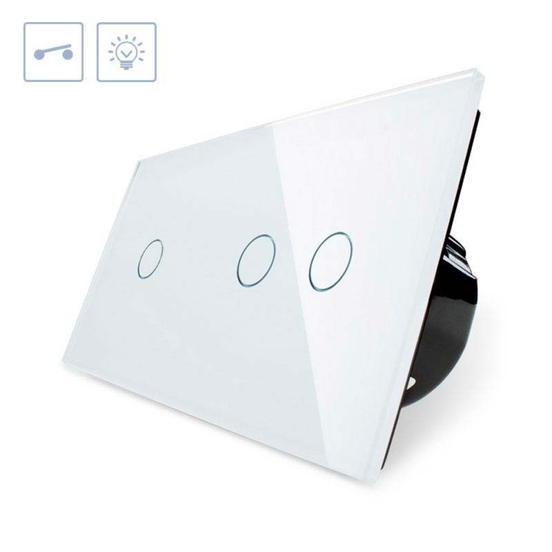 Interruptor 2 módulos táctil, 3 botones, frontal blanco