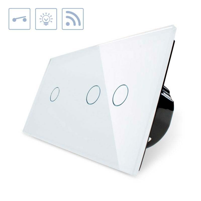 Interruptor 2 módulos táctil + remoto, 3 botones, frontal blanco