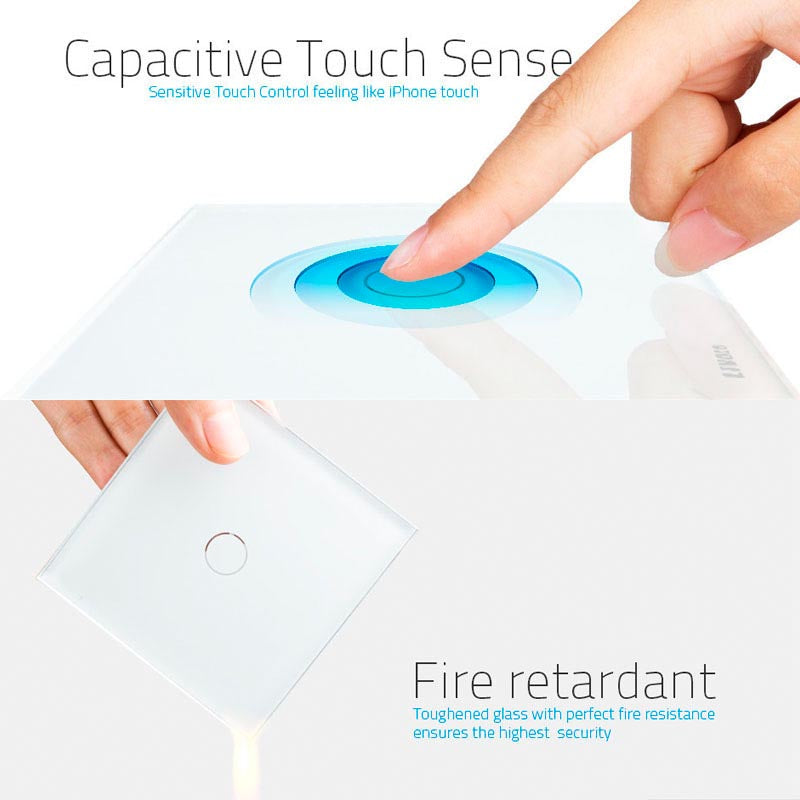 Todos los mecanismos eléctricos disponen de alta resistencia al fuego gracias a su panel frontal hecho de vidrio templado que aporta gran seguridad y al a vez están protegidos contra la humedad gracias al panel frontal de vidrio totalmente impermeable.