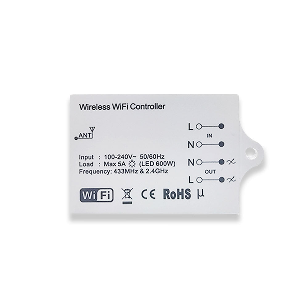 Receptor que recibe la señal de forma inalámbrica del pulsador Kinetic para encender o apagar la luminaria LED conectada u otro dispositivo. Control por WiFi, App IOS, Android, Tuya, y por voz con Alexa o Google Home.